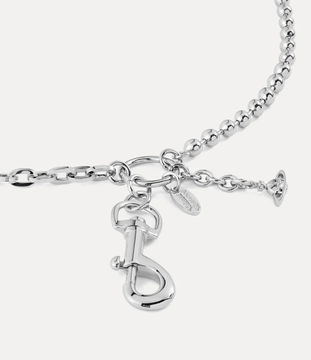 Lanțul nostru pentru curea de bărbat este realizat din metal lustruit de culoare argintie și are un design stratificat, completat de zale ovale alungite și un lanț clasic cu bile. Finisat cu un sistem de închidere sigur cu clemă și un inel circular, accesoriul este completat de un charm gravat și un pandantiv miniatural în formă de glob.