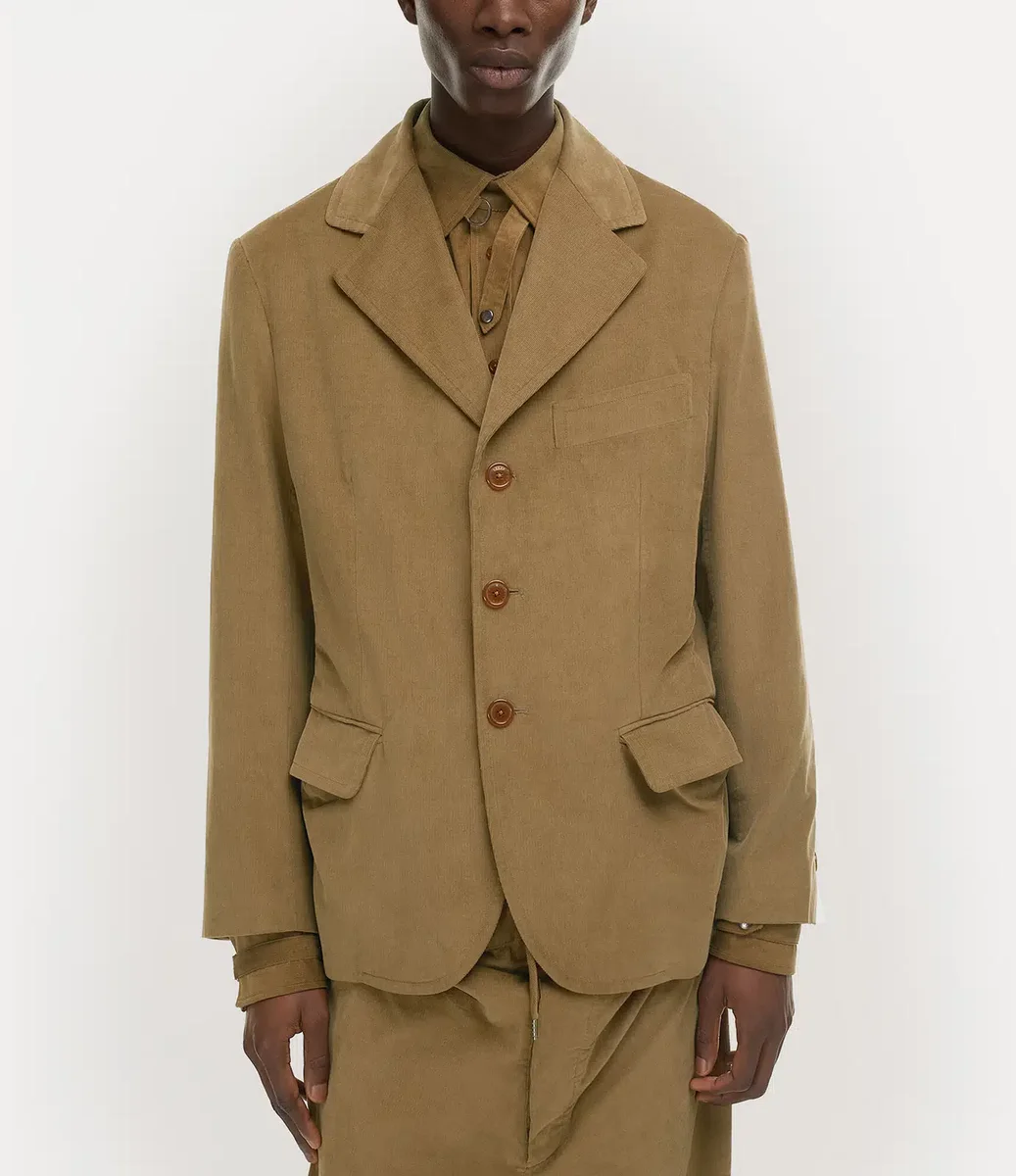 Jacheta noastră Wreck este un model emblematic al casei de modă. În acest sezon, piesa este reinterpretată într-un finisaj moale din catifea de bumbac, completată cu nasturi gravați pe partea din față a modelului. Ușor cusută în talie pentru o potrivire mai conturată, este finisată cu un guler cu revere.