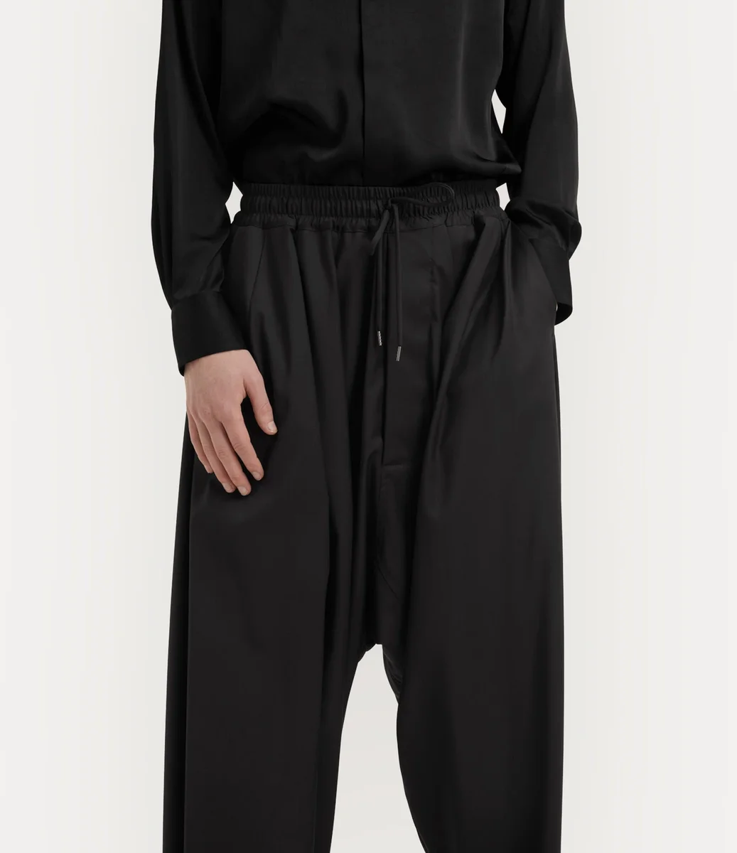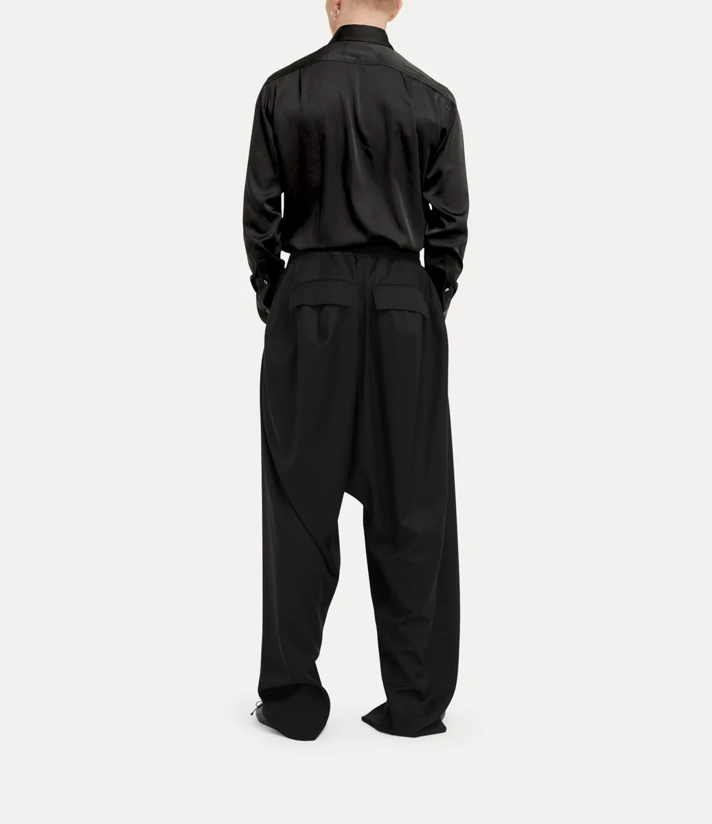 Pantalonii noștri Balloon au fost reinventați în acest sezon, având un finisaj moale din lână, talie înaltă și închidere fluidă cu șnur. Detaliul cu croi coborât se transformă într-o siluetă voluminoasă cu picioare largi, iar două buzunare cu clapă împodobesc partea din spate.