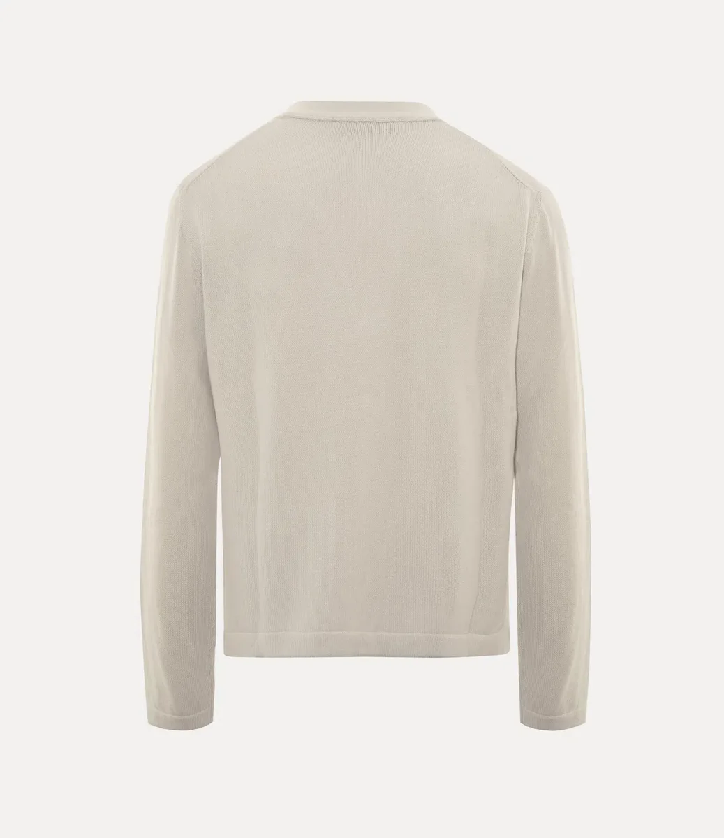 Cardiganul nostru Alex din arhivă a fost reînnoit în acest sezon, fiind disponibil într-un amestec moale de bumbac și cașmir. Piesa are un design cu nasturi în față, completat de un decolteu în V și un detaliu orb pe partea stângă a pieptului – sinonim cu viziunea Viviennei de a lansa tradiția în viitor.