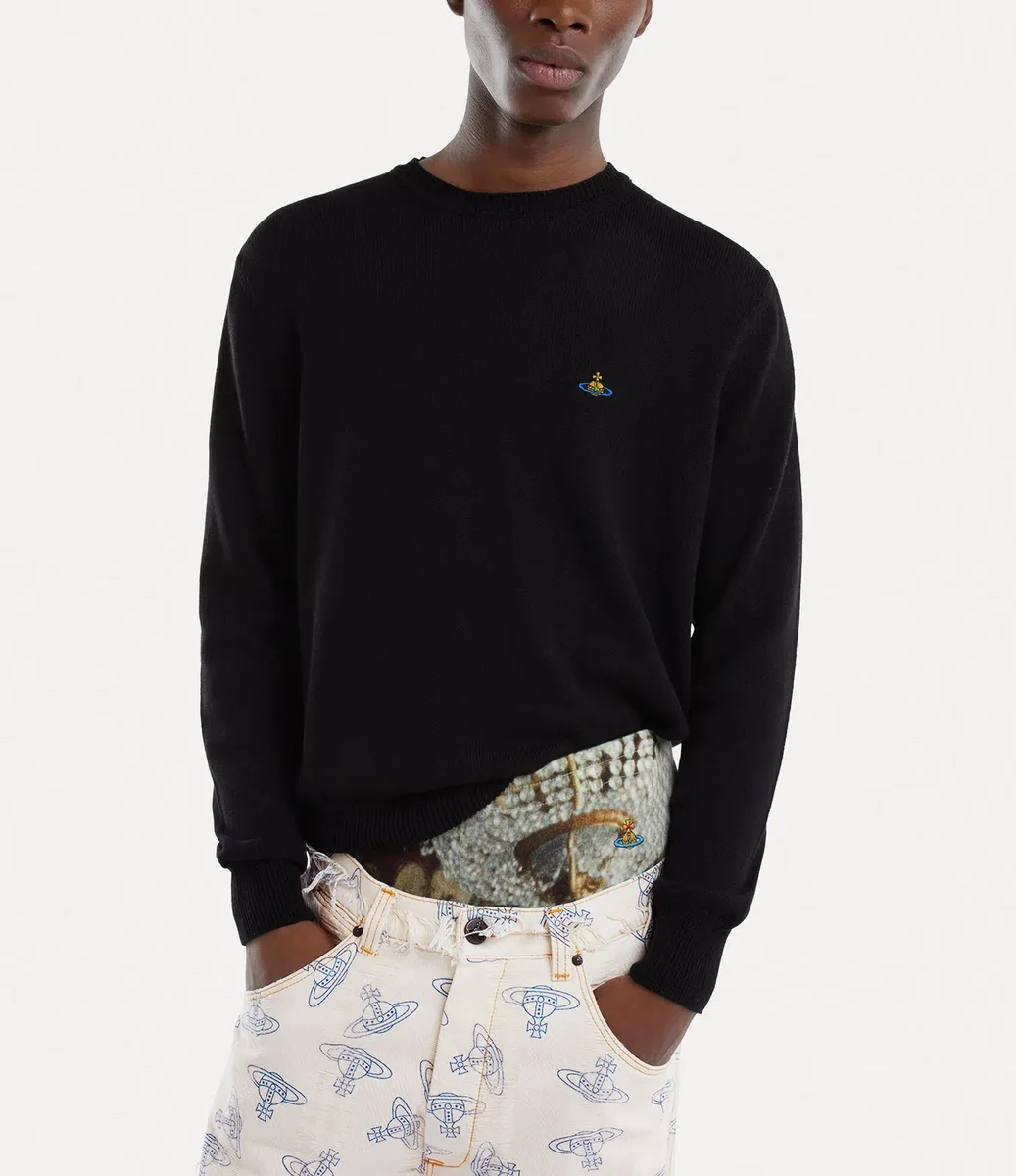 Puloverul nostru Alex cu guler rotund revine în acest sezon cu o siluetă moale din bumbac, completată de detalii complexe cu nervuri și finisaje cu manșete la mâneci lungi. Piesa este decorată cu broderia noastră semnătură, realizată cu fir multicolor, sinonimă cu viziunea Vivienne Westwood de a lansa tradiția în viitor.