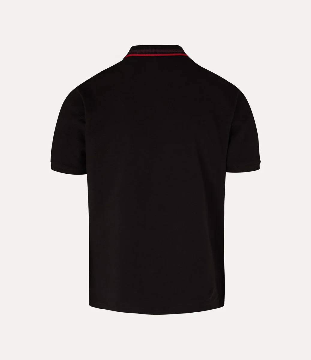 Polo-ul nostru Classic a fost reinventat în acest sezon cu nasturi strălucitori din sidef și detalii cu dungi pe guler. Confecționat din bumbac moale, articolul prezintă un motiv brodat în formă de glob pe partea stângă a pieptului, care simbolizează tradiția, înconjurat de inelele celeste ale lui Saturn, reprezentând viitorul.