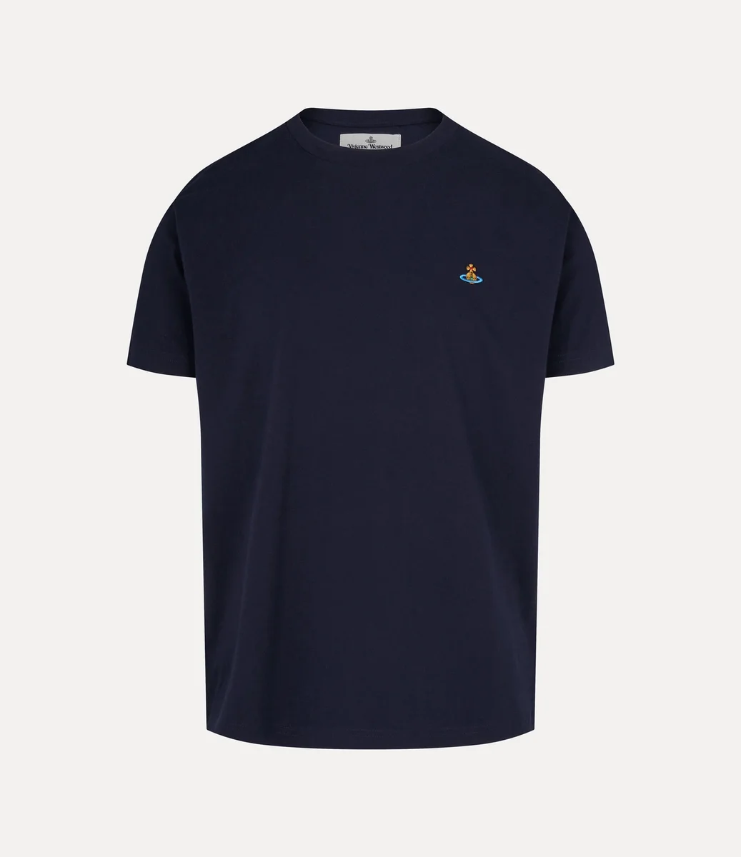 Tricoul nostru clasic are o siluetă din bumbac moale, cu mâneci scurte și decolteu rotund. Piesa are o broderie multicoloră în formă de glob pe partea stângă a pieptului – sinonimă cu viziunea Viviennei de a duce tradiția în viitor.