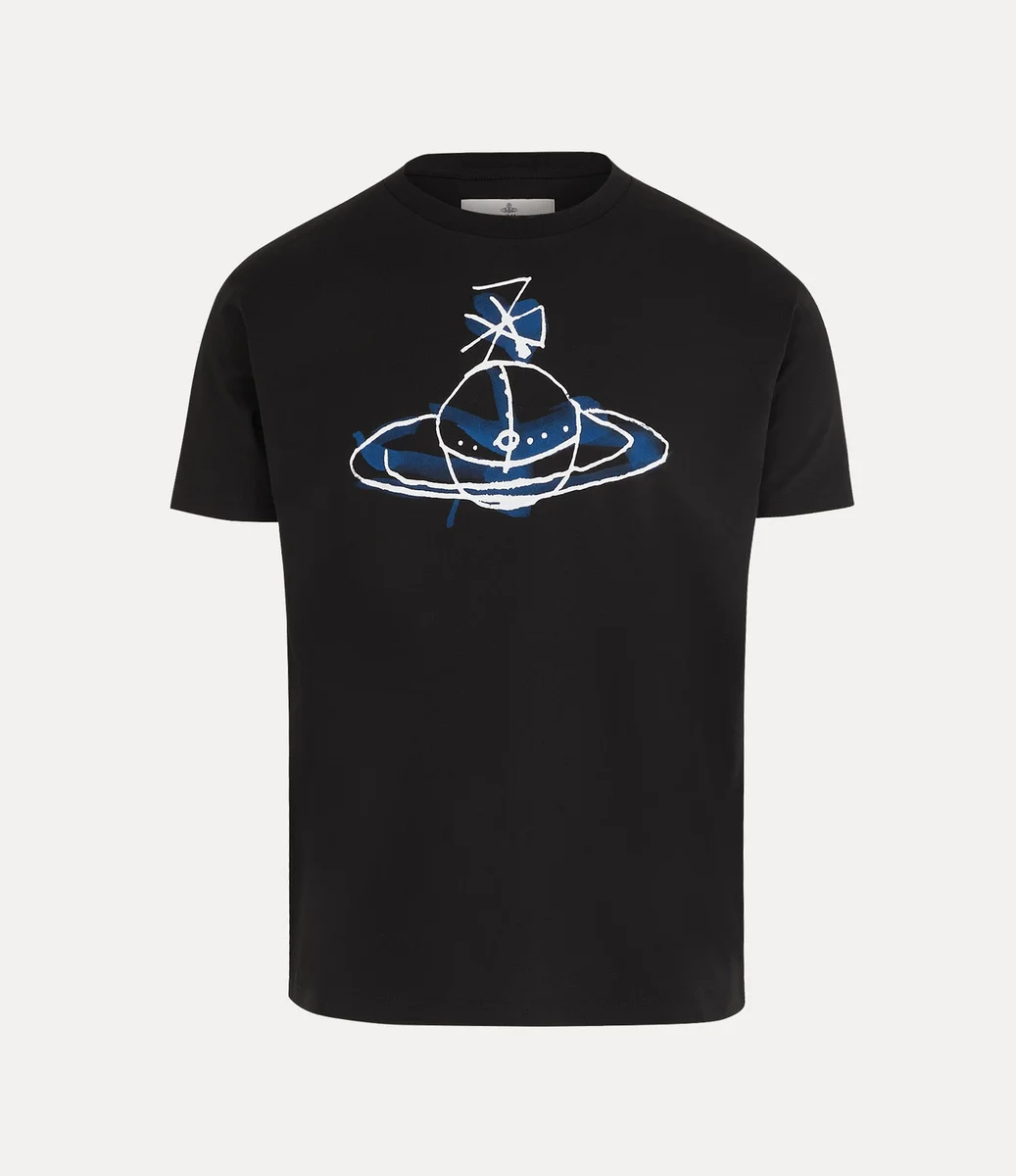 Tricoul nostru clasic are o siluetă din bumbac moale, cu mâneci scurte și decolteu rotund, finisat cu borduri cu nervuri. Piesa prezintă grafica „Drawn Orb” a acestui sezon, concepută pentru a imita pensulele pictate manual – un tribut adus esteticii DIY caracteristice casei.