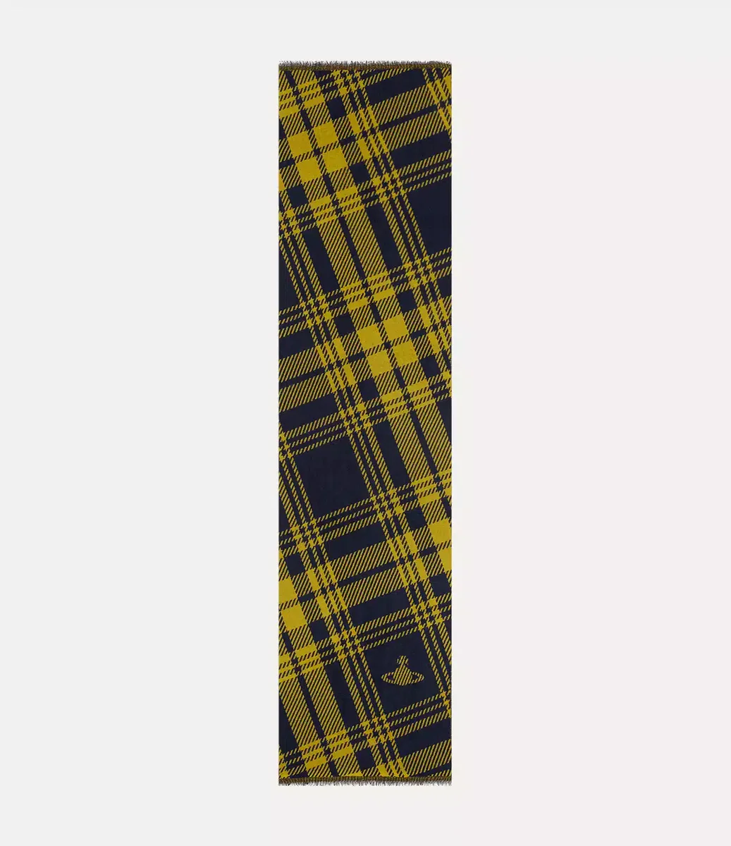 Eșarfa noastră este confecționată din lână moale și țesută cu un motiv tartan, inspirat de veșmintele tradiționale scoțiene din Highlands. Croită într-o formă dreptunghiulară clasică, piesa este finisată cu margini ușor franjurate și emblema „Silhouette Orb” a casei.