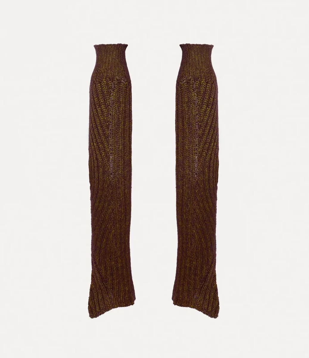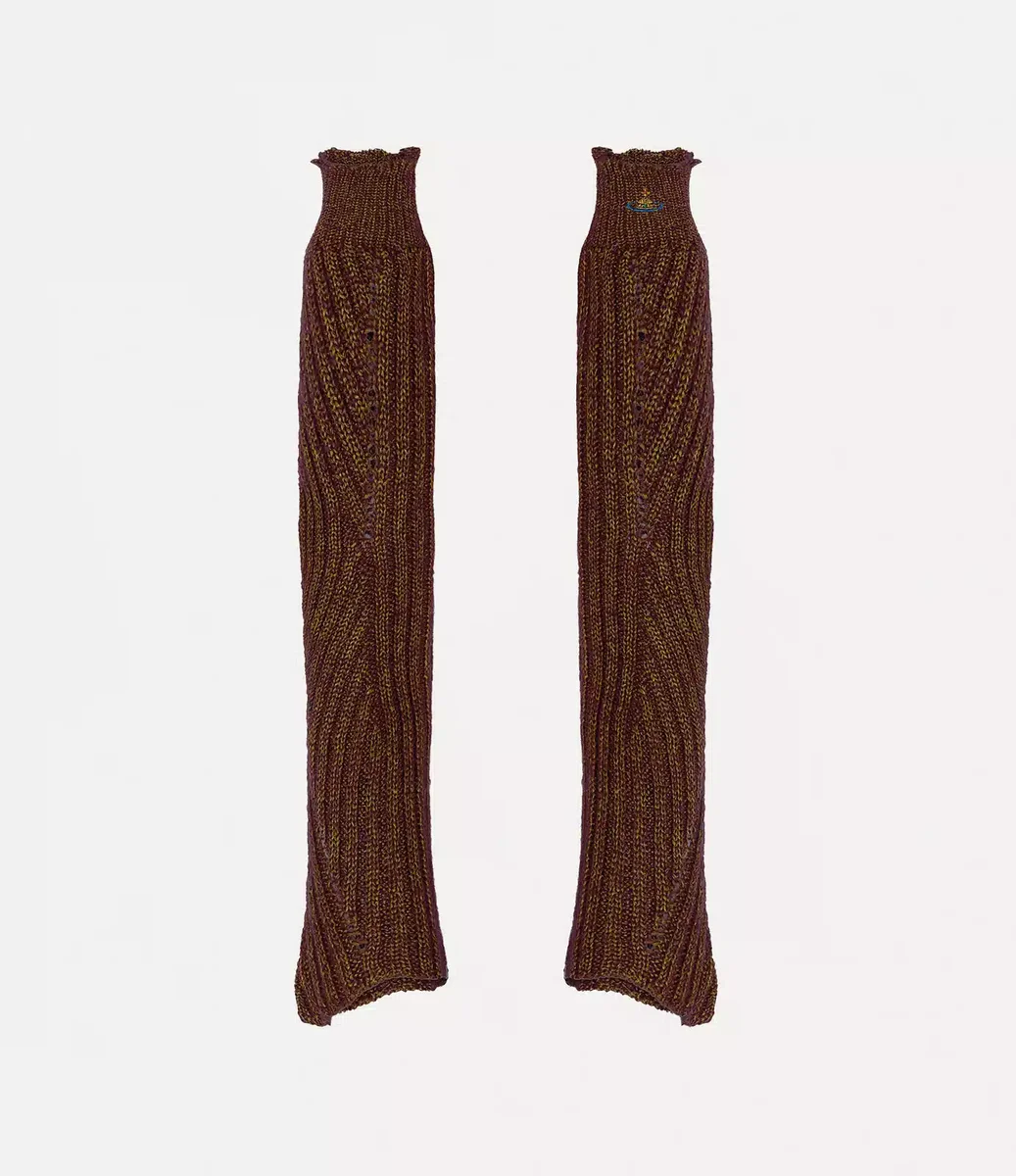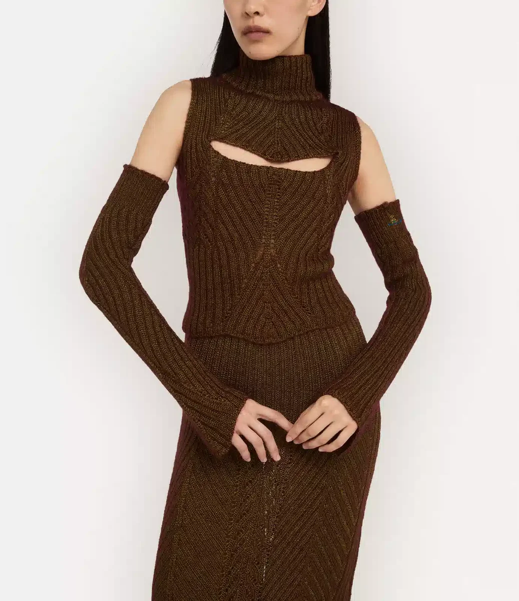 Mănușile fără degete Mary de la Vivienne Westwood sunt confecționate dintr-un amestec de mătase și mohair și prezintă un mix de cusături în zig-zag și tricotate, completate cu detalii nervurate.