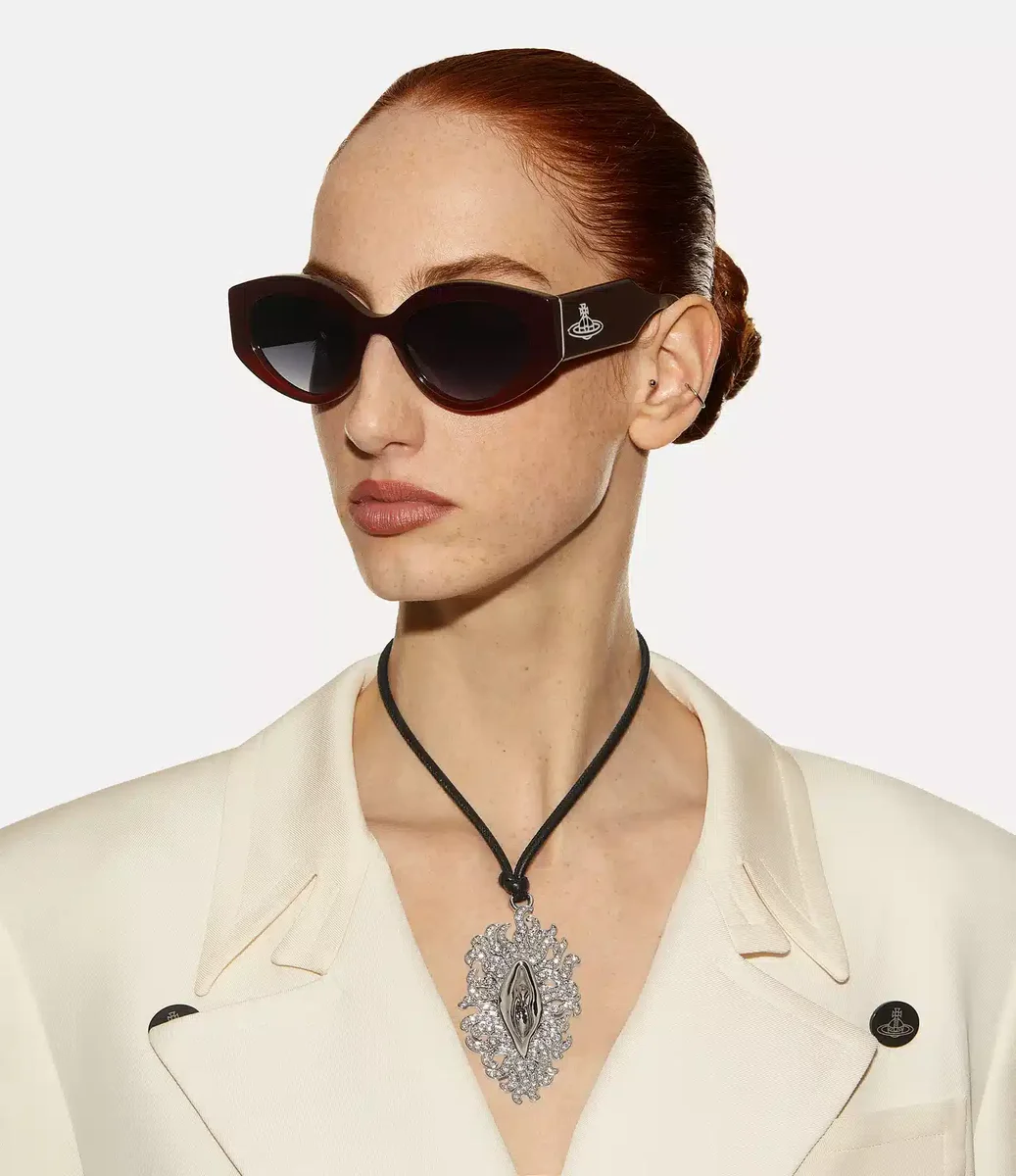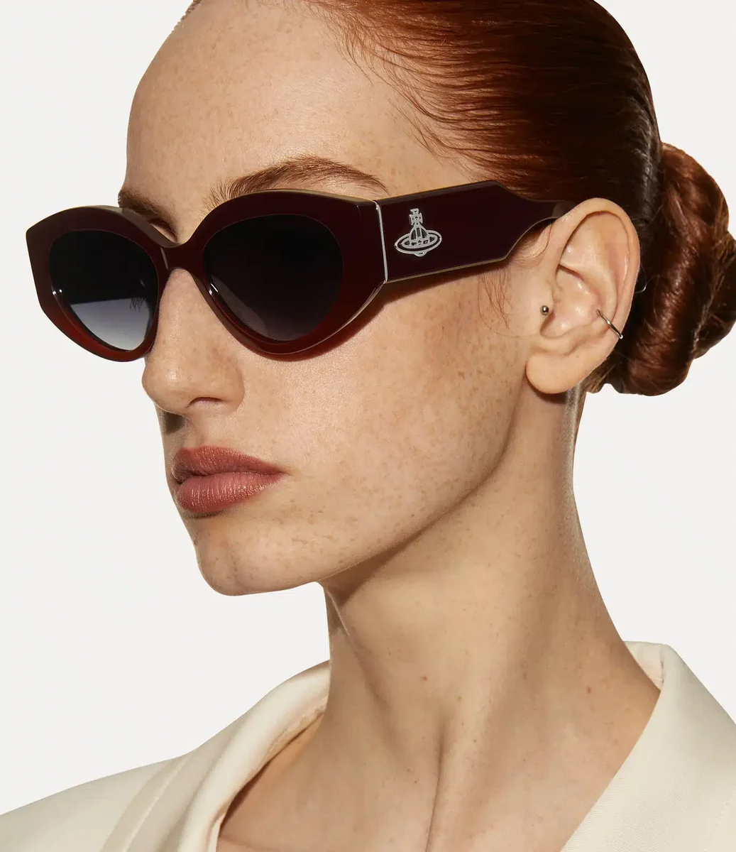 Ochelarii de soare Jackie au o siluetă atemporală, inspirată de fotografiile vintage și de icoanele underground din anii 1980. Prezintă lentile degradate cu protecție UV, iar stilul este completat de o sferă metalică bidimensională la tâmple, care întruchipează viziunea Viviennei de a lansa tradiția în viitor.