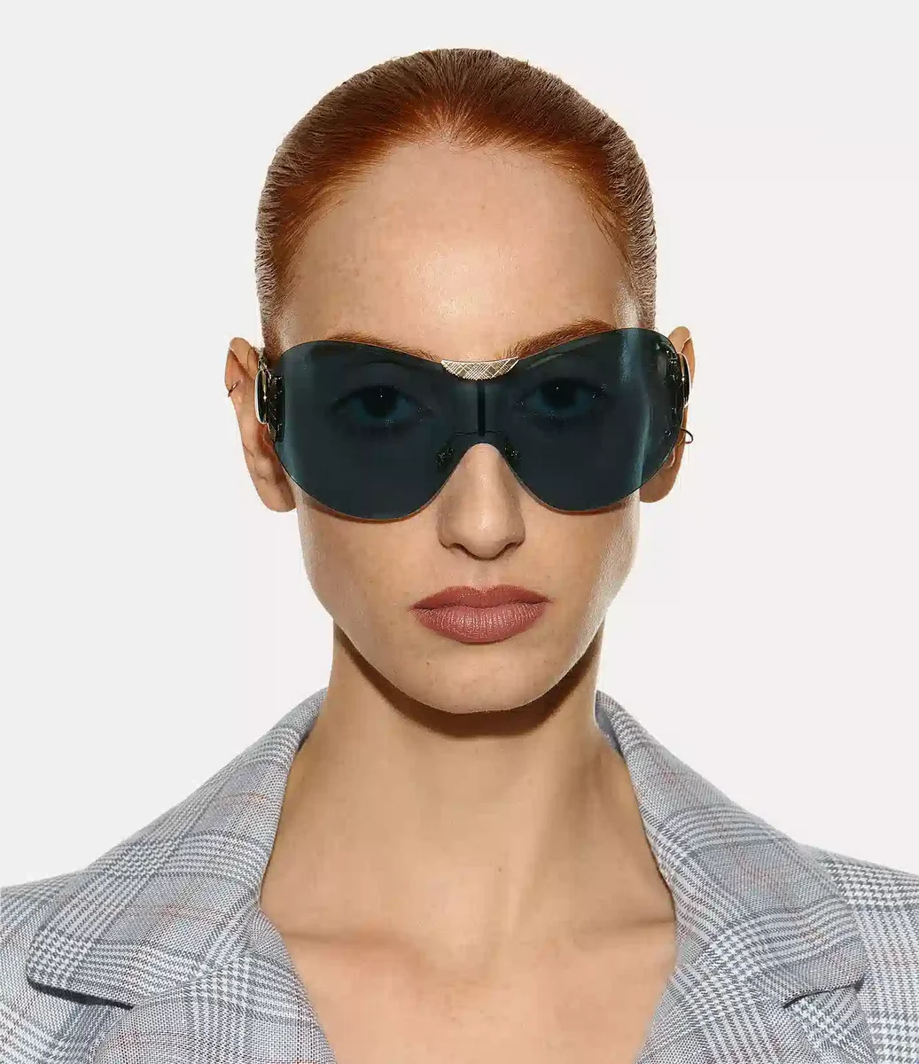 - Acești ochelari de soare sunt prezentați într-o cutie din piele și sunt însoțiți de o pungă din bumbac, o cârpă din poliester și o cutie din hârtie.