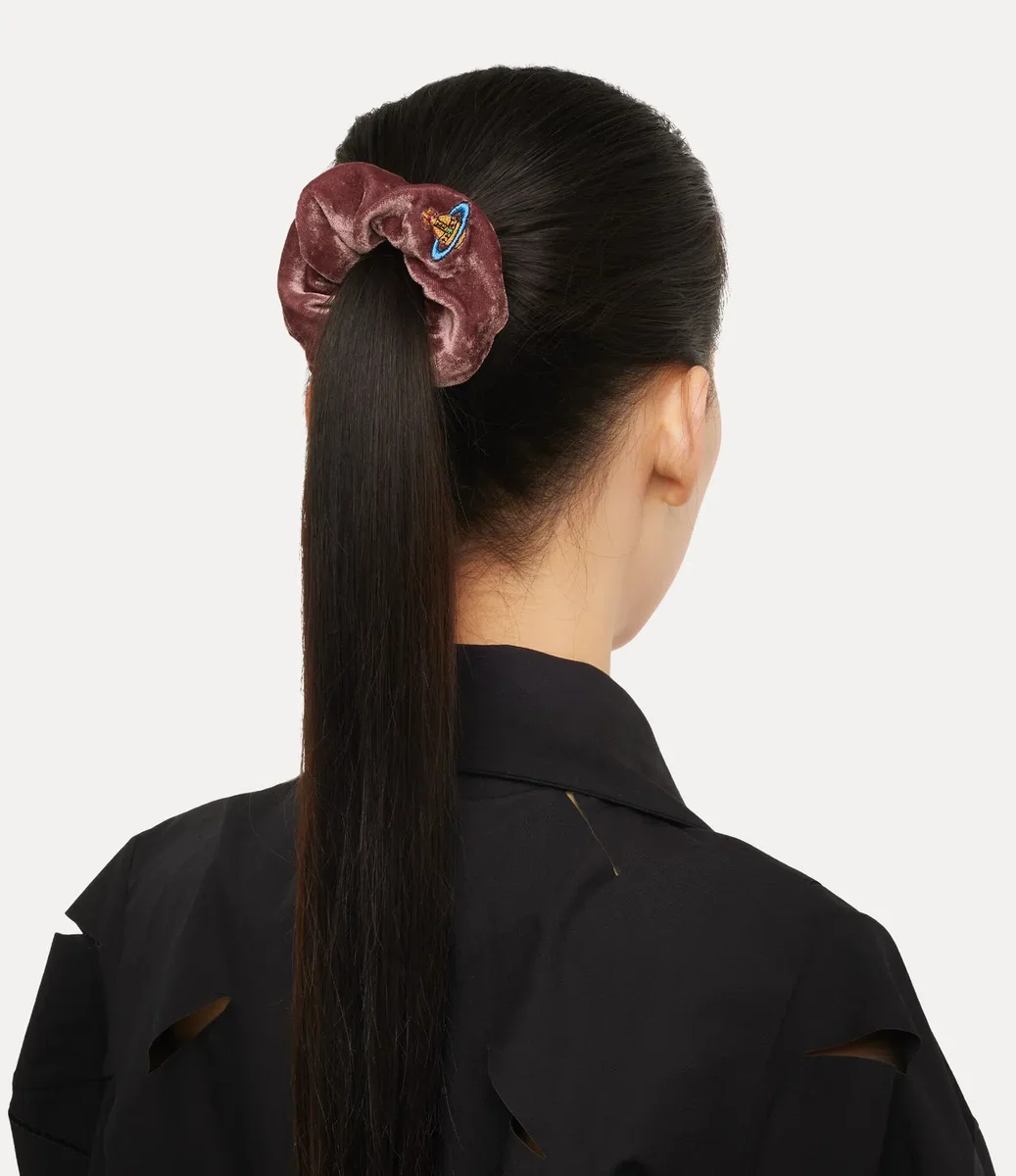 Scrunchie-ul nostru mic este confecționat dintr-un amestec moale de mătase, cu un finisaj catifelat. Este accentuat cu broderia clasică orb în fir multicolor, întruchipând etosul casei de a lega trecutul de viitor.