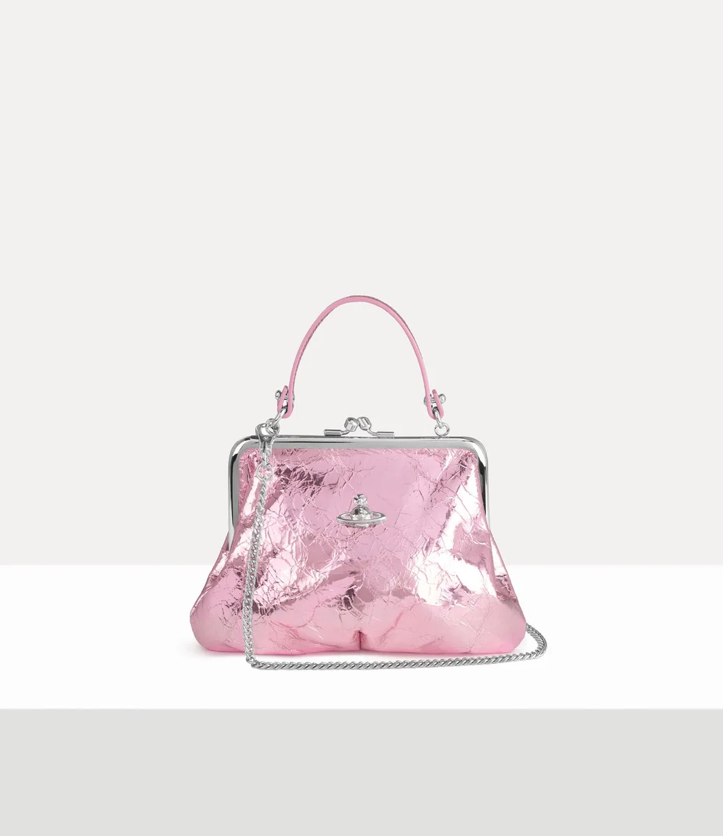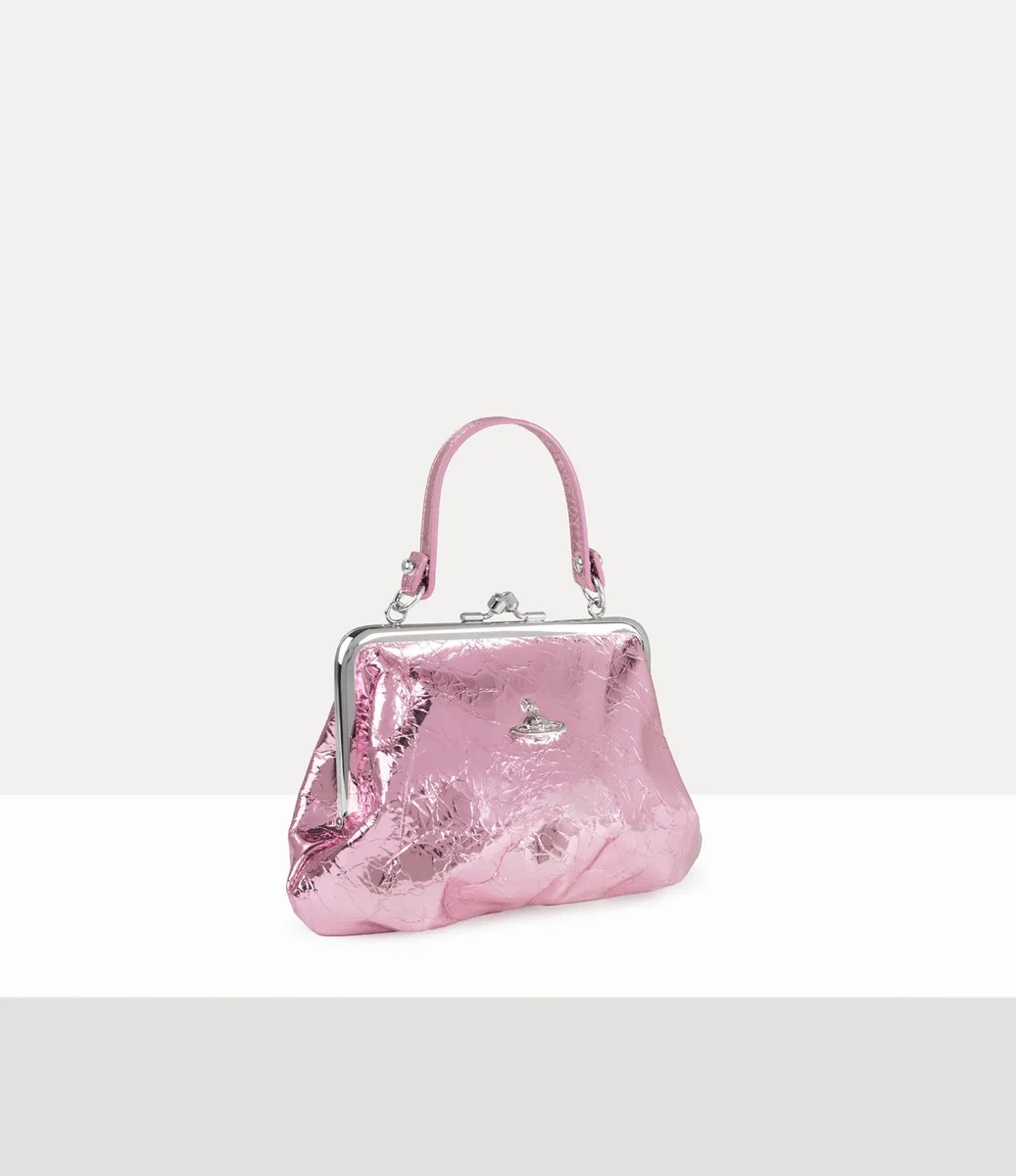 În acest sezon, poșeta noastră emblematică Granny Frame este reinterpretată în piele metalică cu efect creponat, inspirată din bogata arhivă a casei. Detaliată cu o structură lustruită expusă și o închizătoare cu clichet în partea superioară, piesa amintește de poșetele pentru monede de la începutul secolului al XX-lea.