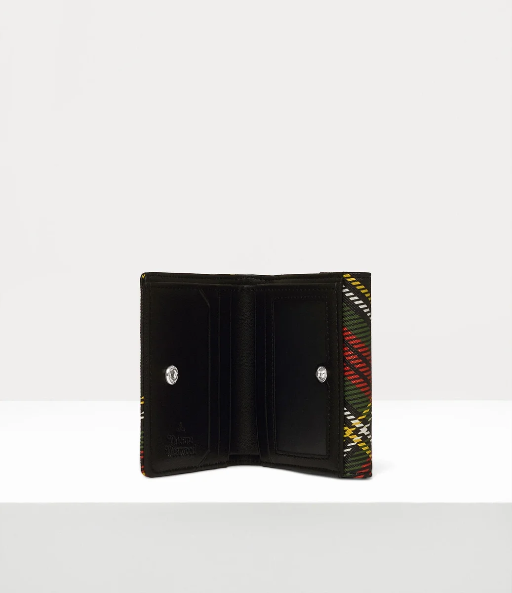 Portofelul nostru mic este reimaginat în motivul tartan „Chelsea” al acestui sezon, completat cu tonuri discrete și accesorii clasice argintii. Piesa este decorată cu motivul „Line Orb” caracteristic casei, care surprinde viziunea Viviennei de a lansa tradiția în viitor.