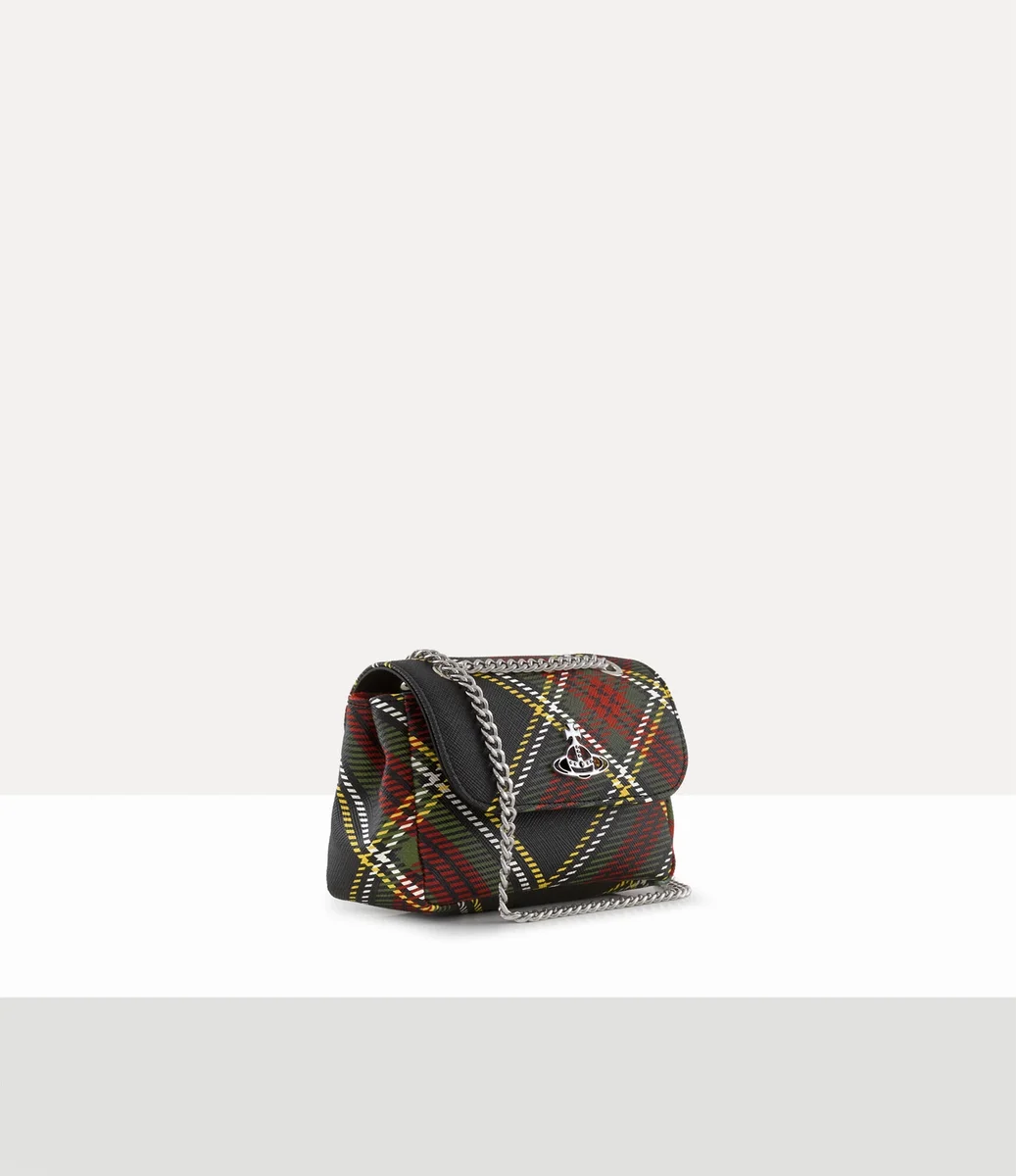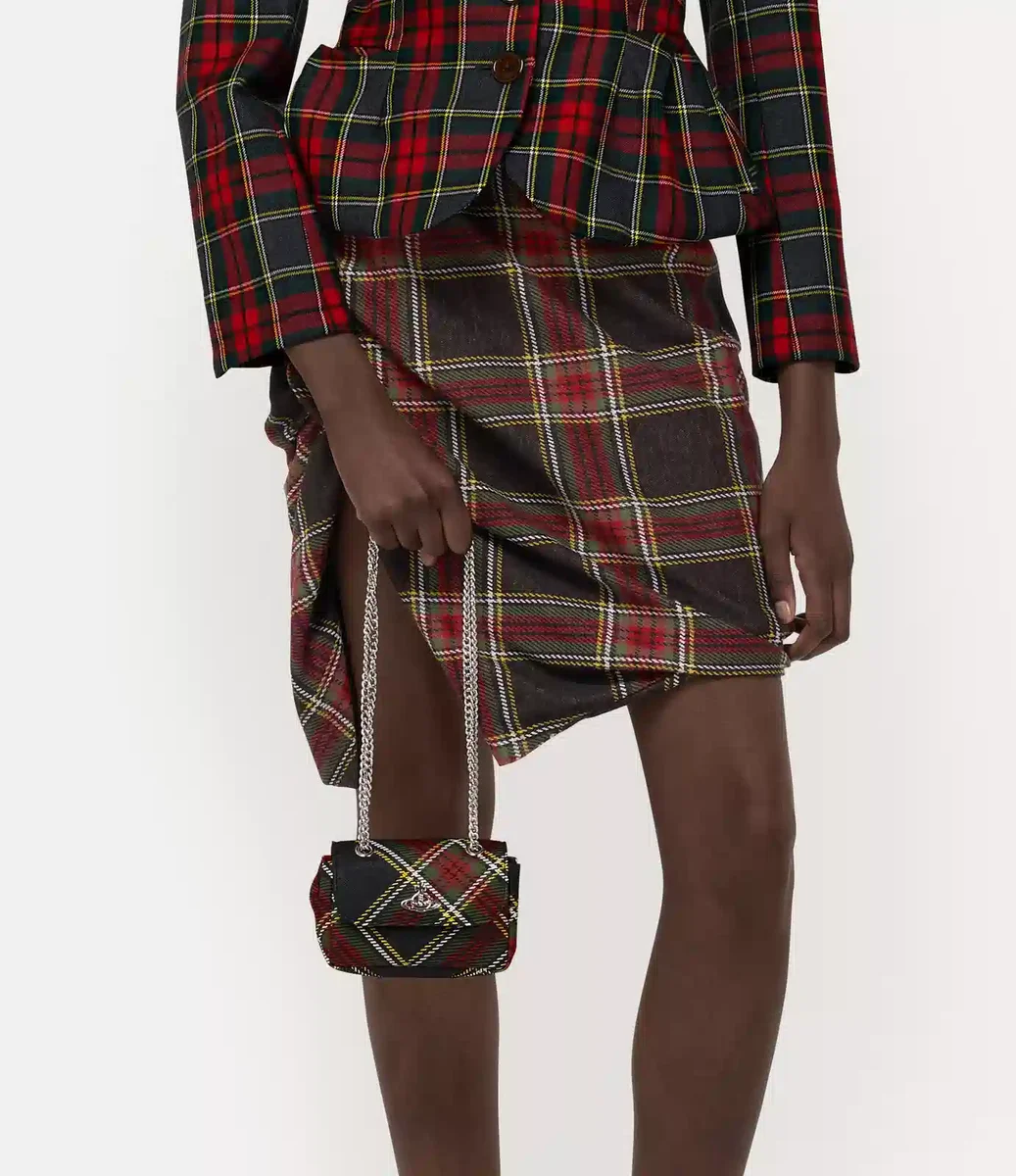 Portofelul nostru mic, emblematic, este confecționat din piele PU moale, completat cu tartanul sezonului în nuanțe vibrante. Designul este împodobit cu motivul „Line Orb” al casei pe clapeta frontală, care simbolizează tradiția, înconjurat de inelele celeste ale lui Saturn, reprezentând viitorul.