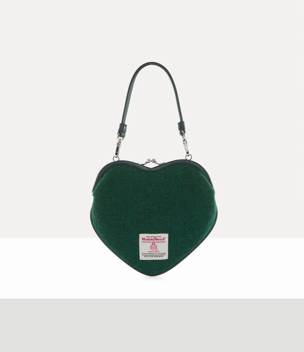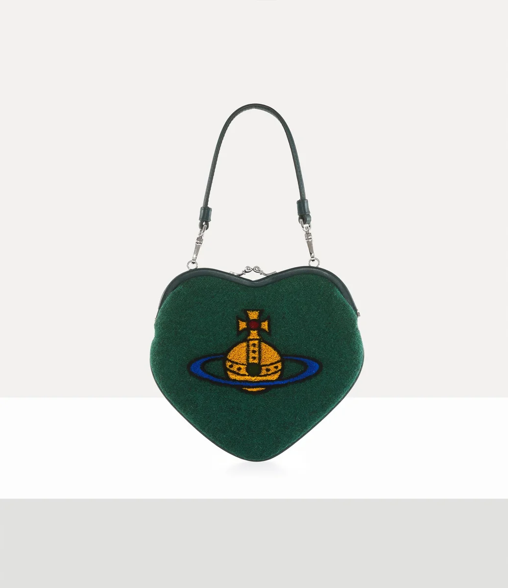 Poșeta Vivienne Westwood Belle Heart Frame, din lână, are silueta clasică în formă de inimă, finisată cu motivul nostru orb reinterpretat într-un finisaj cu smocuri.