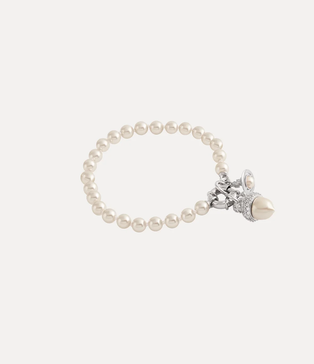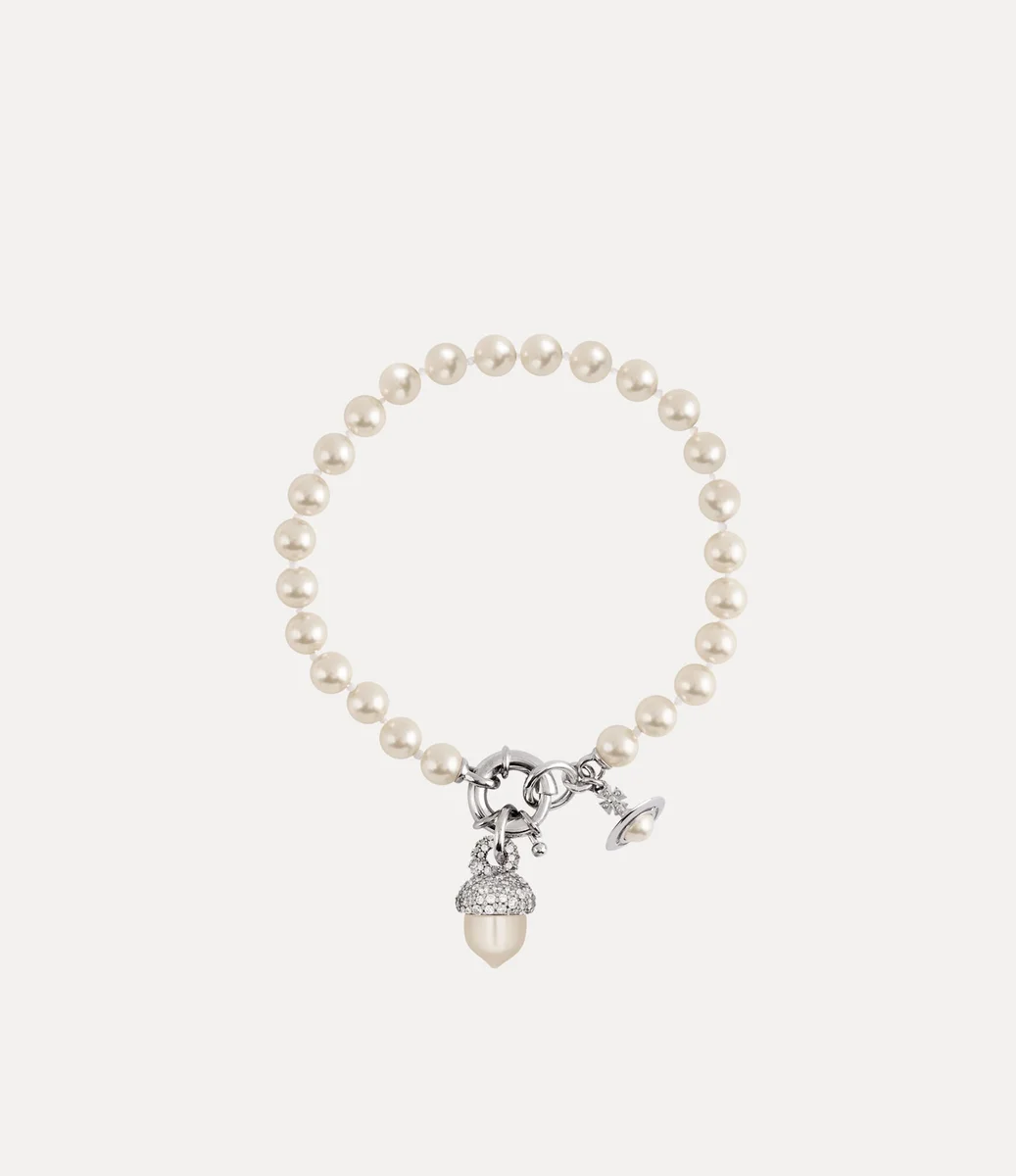 Brățara Lucille Pearl este alcătuită dintr-un șir de perle strălucitoare din sticlă Swarovski, care evocă un sentiment de măreție și lux. În centrul său, o ghindă din rășină în formă de perlă este împodobită cu cristale pavé, simbolizând puterea și noile începuturi, completată de un pandantiv delicat în formă de glob cu perle.