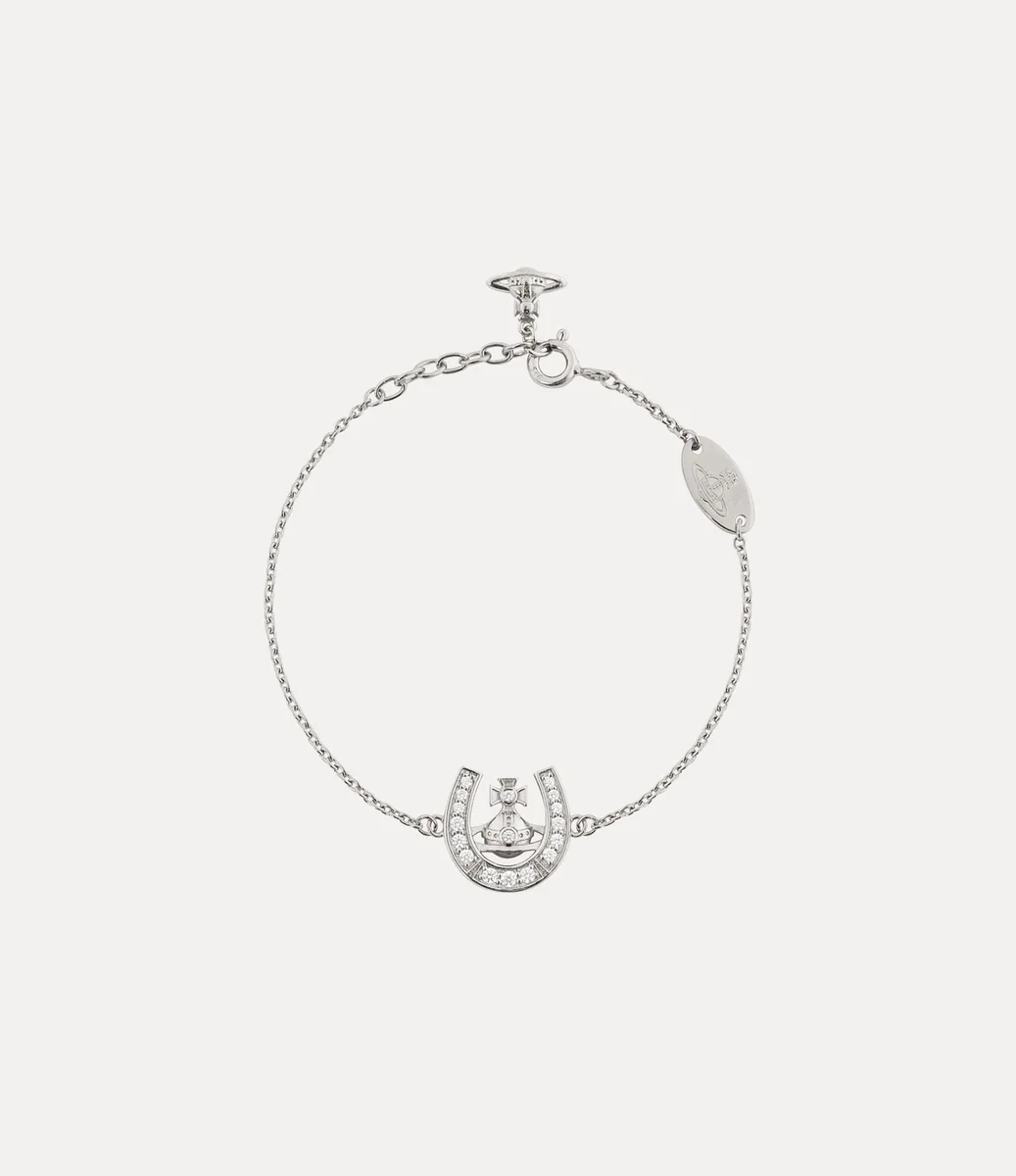 Brățara noastră Mare readuce la viață iconografia caracteristică a casei, fiind împodobită cu simboluri ale norocului și protecției. Încrustată cu cristale strălucitoare în tonuri similare, piesa prezintă un motiv central în formă de potcoavă, cu un glob placat cu platină în centru, finisat cu un glob delicat atârnat la închizătoarea tip homar.