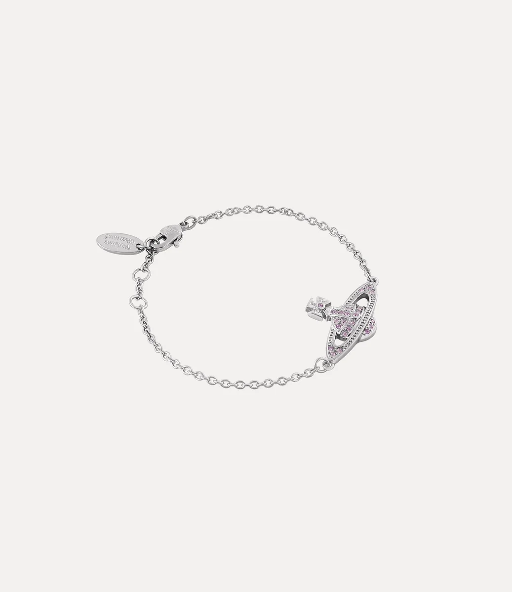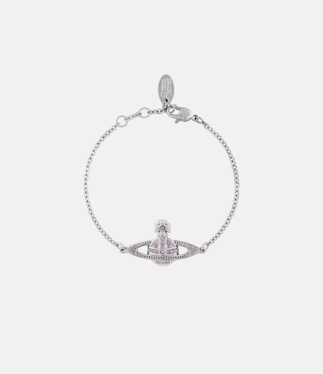 Brățara noastră Mini Bas Relief Chain are în centru un glob distinctiv din metal argintiu, inspirat de motivul caracteristic al casei. Încrustată cu cristale violete pavé, piesa este finisată cu o etichetă ovală gravată cu litere la închizătoarea sigură tip homar.