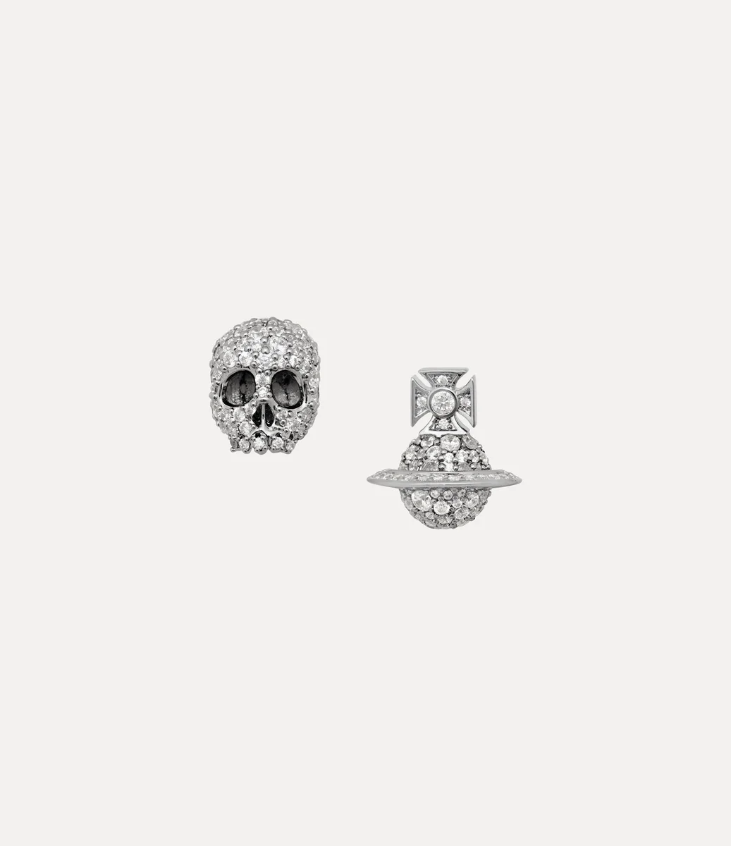 Cerceii Circe Stud dezvăluie iconografia caracteristică a casei prin designul asimetric, combinând motivele craniu și glob argintii. Încrustați cu cristale transparente pavé pentru un finisaj strălucitor, cerceii sunt completați cu închizători în formă de fluture, caracteristice casei.