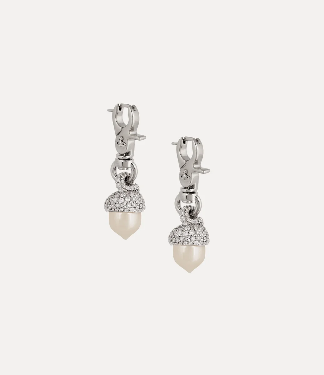 Cerceii Lucille Large au o închizătoare pivotantă în stil hardware, cu un știft articulat sigur, prezentând motivul tradițional al ghindei, cu o bază strălucitoare acoperită cu perle și un capac împodobit cu cristale pavé. Brandul orb complex gravat pe închizătoare completează designul, reflectând viziunea Viviennei de a lansa tradiția în viitor.