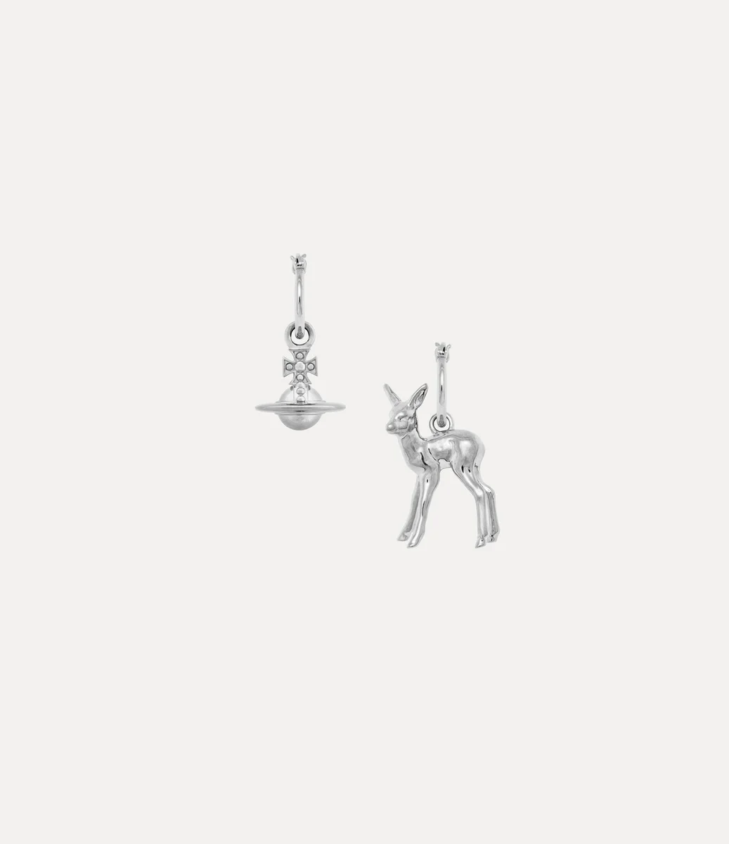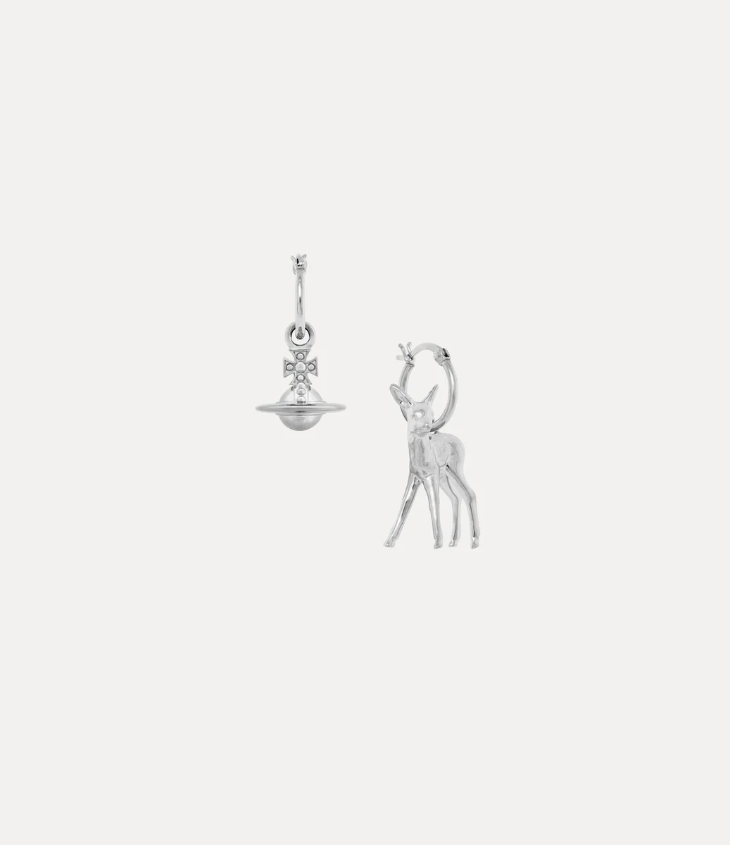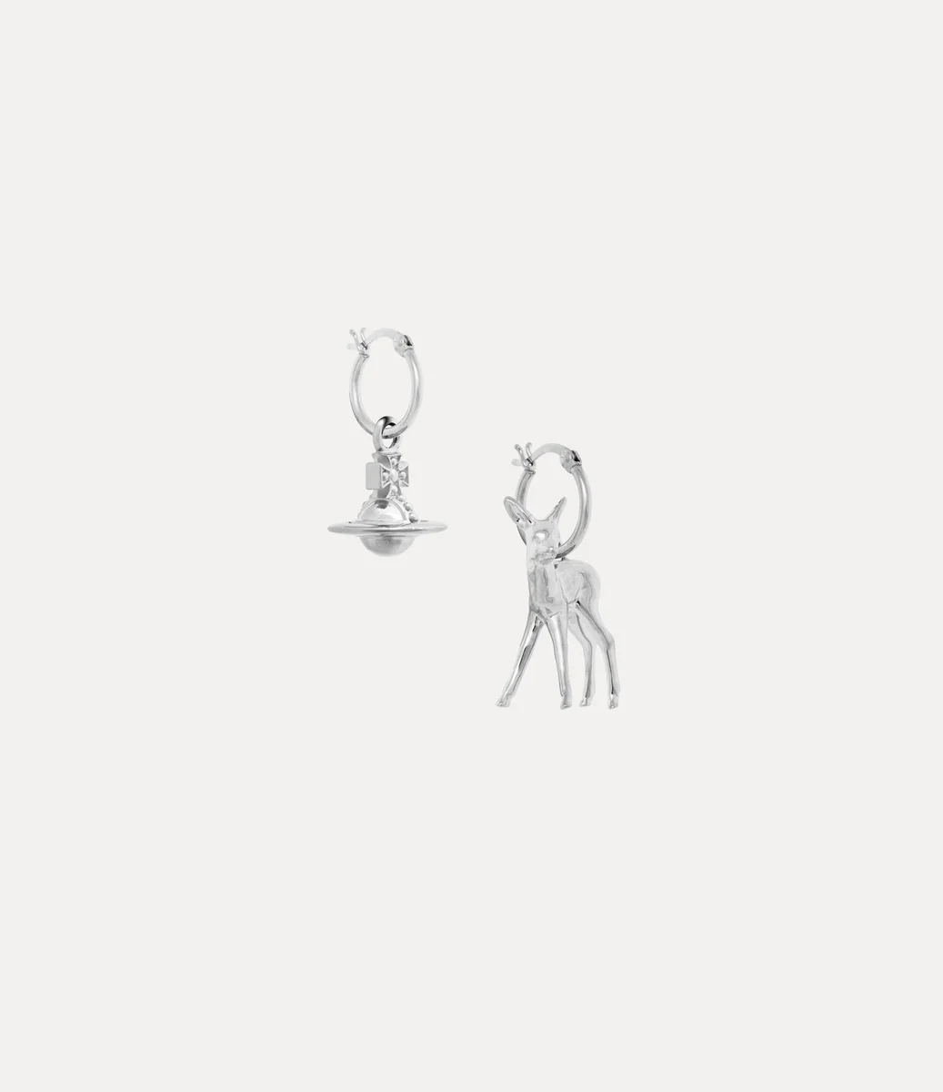 Cerceii Monette Small reinterpretează iconografia caracteristică a casei prin intermediul unui design asimetric, cu un motiv sculptat în formă de cerb pe o parte și globul clasic pe cealaltă. Fiecare pandantiv atârnat este îmbogățit cu detalii texturate, suspendate de un cerc lustruit.