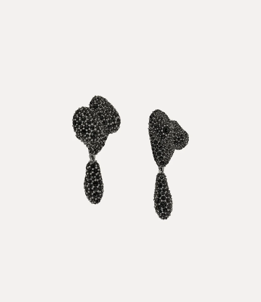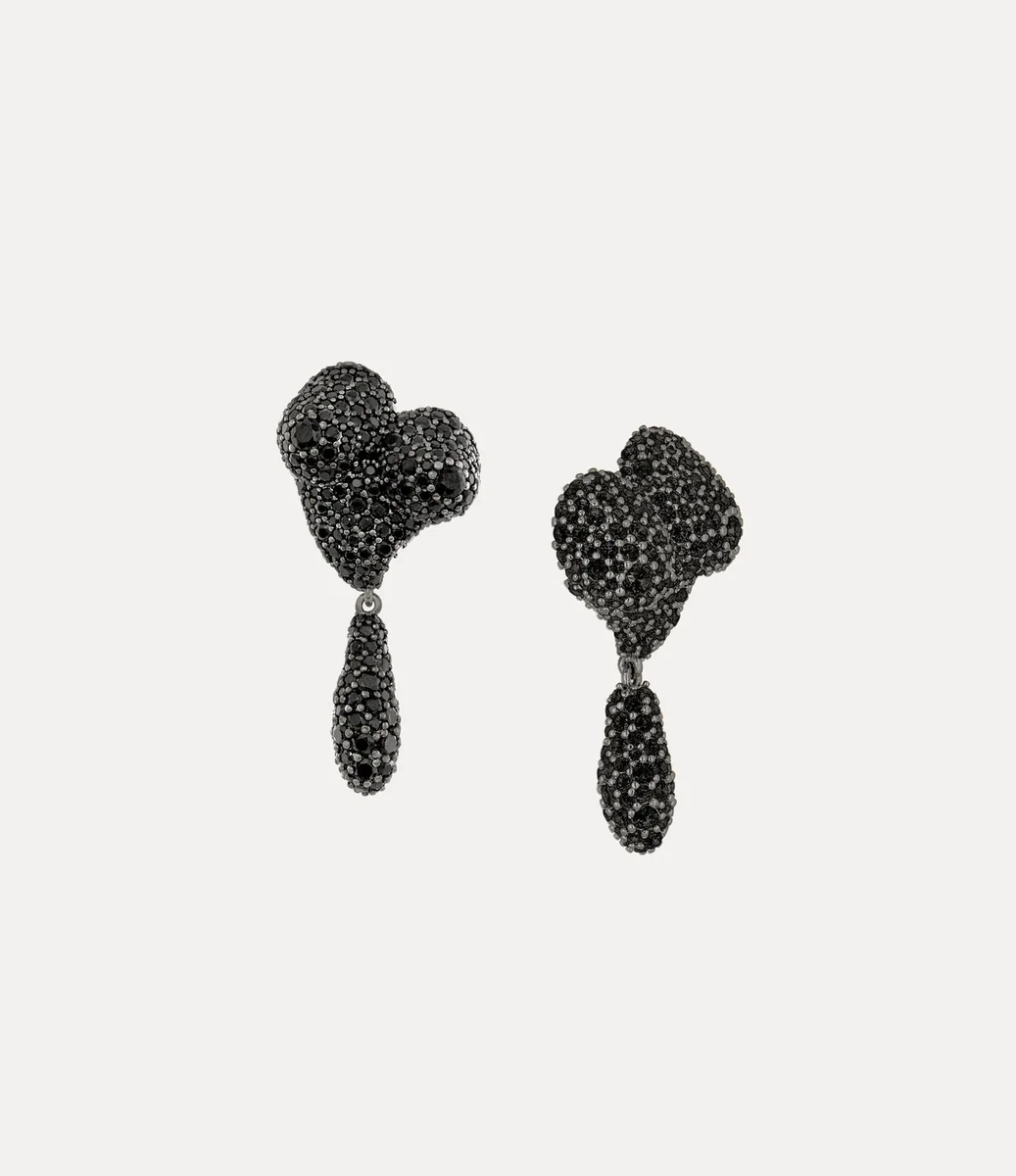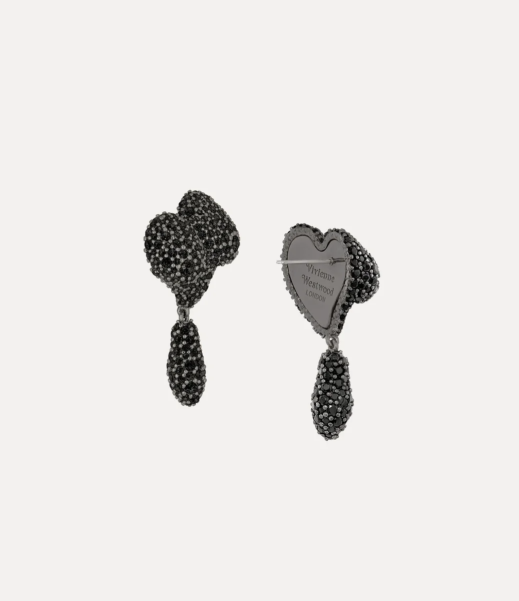 Cerceii Mimosa Pave readuc la viață motivul clasic asimetric în formă de inimă al casei, amintind de afecțiunea Viviennei pentru umanitate și planetă. Încrustată cu detalii din cristal negru, piesa este sculptată delicat într-un vârf conic, completată cu o picătură atârnată.