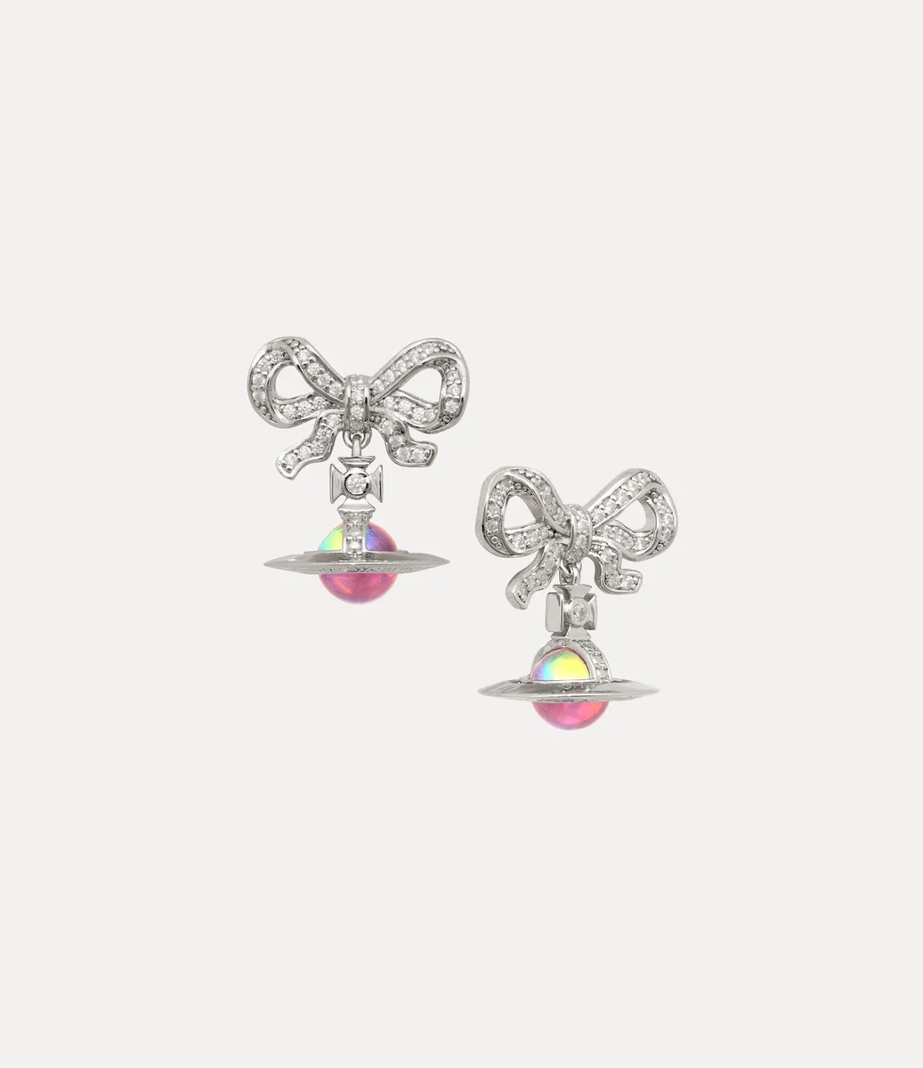 Cerceii Octavie sunt realizați din argint reciclat și finisați cu placare lustruită în nuanță platină. Îmbogățit cu cristale albe strălucitoare, designul combină o fundă în stil georgian cu globul nostru tridimensional caracteristic în centru, realizat într-un finisaj irizat roz, care reflectă motivul clasic al globului casei.
