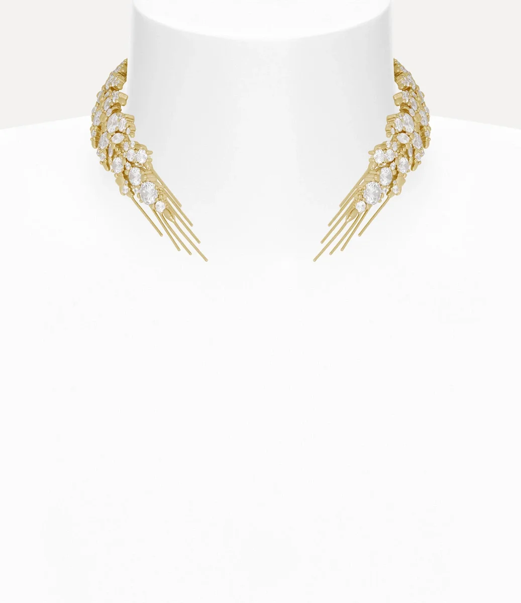 Inspirat din mitologia greacă, colierul Chloris prezintă două motive de grâu delicatamente împletite, simbolizând prosperitatea, fertilitatea și abundența. Lansat pentru prima dată în colecția Andreas Kronthaler pentru primăvara-vara 2024, designul se așează elegant de-a lungul decolteului, fiind împodobit cu cristale strălucitoare în pavé și finisat cu un închizător discret cu balama în spate.