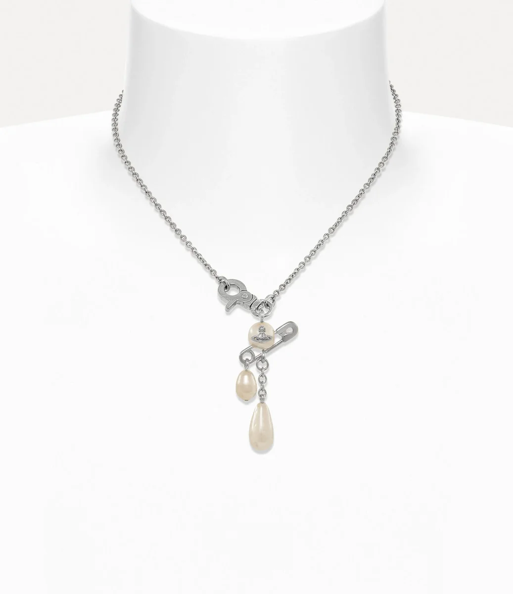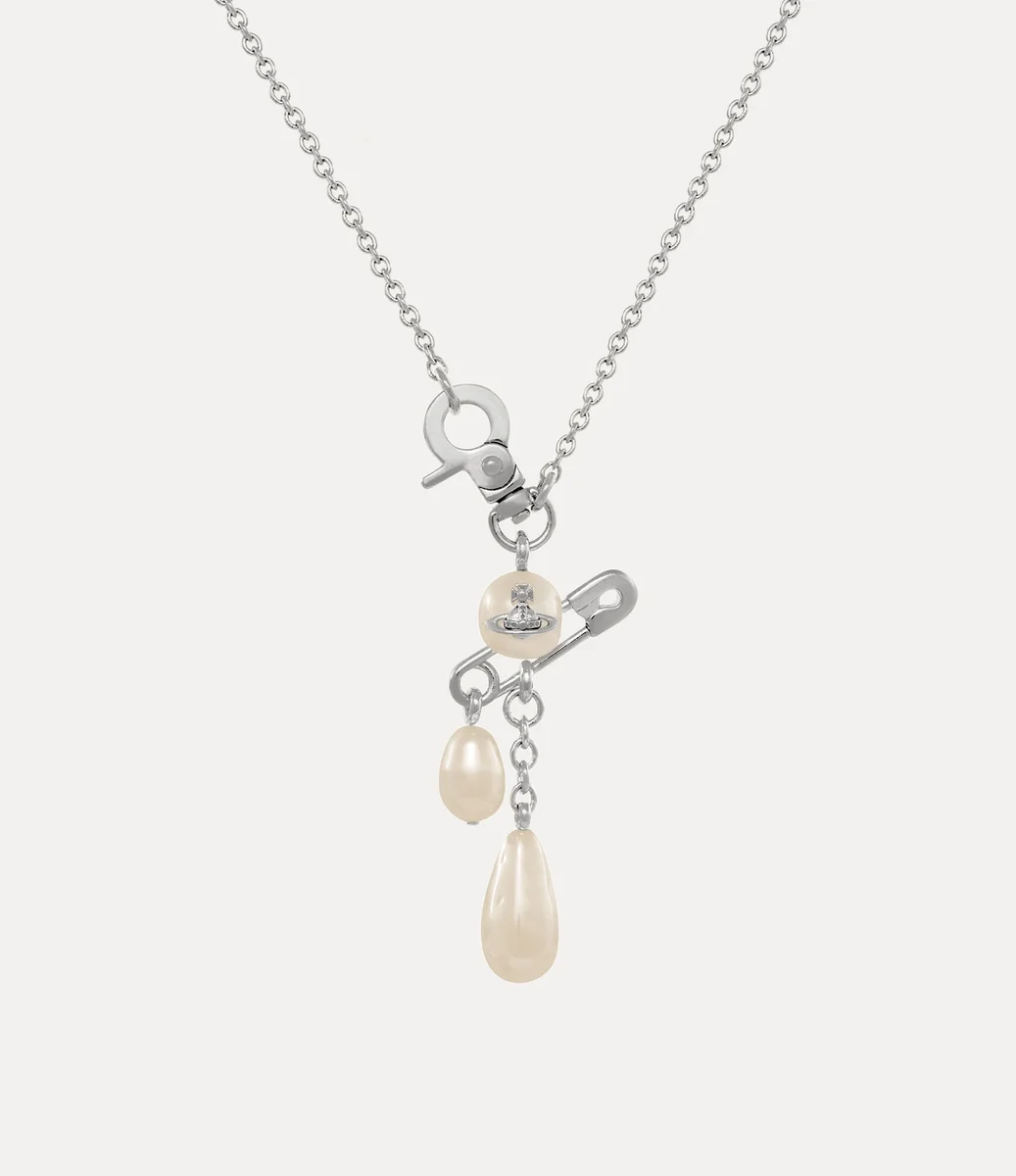 Colierul Claude Small are o perlă rotunjită cu un glob central, accentuat de un detaliu caracteristic în formă de ac de siguranță – o referință la stilul nonconformist, inspirat de punk, al lui Vivienne. O perlă în formă de picătură și detalii delicate ale lanțului atârnă elegant de pandantiv, adăugând mișcare designului, în timp ce închizătoarea inspirată de accesoriile metalice permite o închidere ușoară.