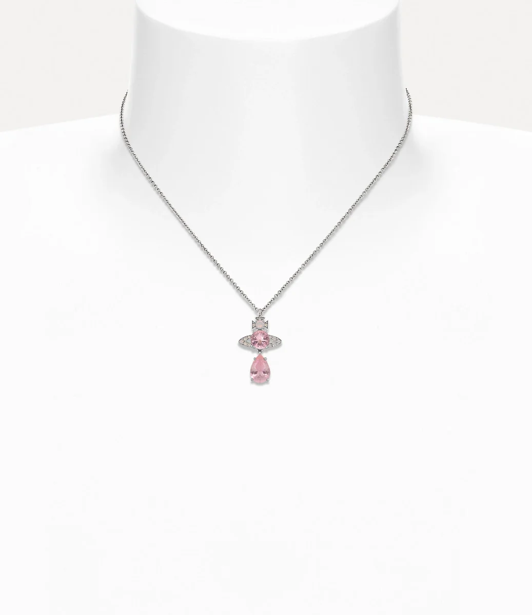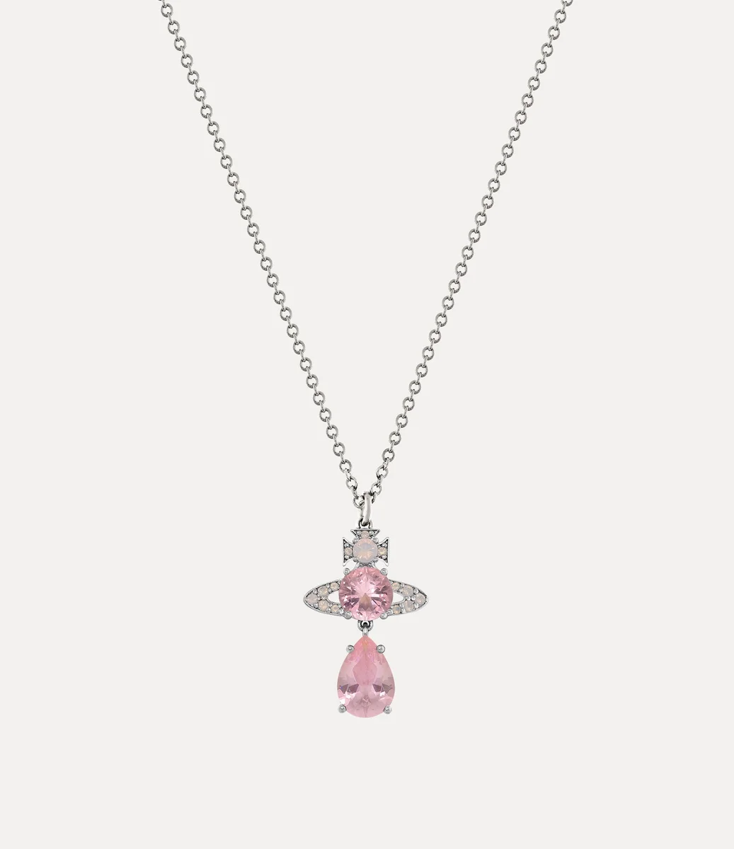 Colierul nostru cu pandantiv Ismene Drop a fost actualizat în acest sezon cu detalii din cristale de culoare roz, completat cu un pandantiv sferic care coboară într-un cristal în formă de pară. Piesa se închide cu un sistem de închidere sigur, marcat cu o etichetă ovală cu litere în relief.