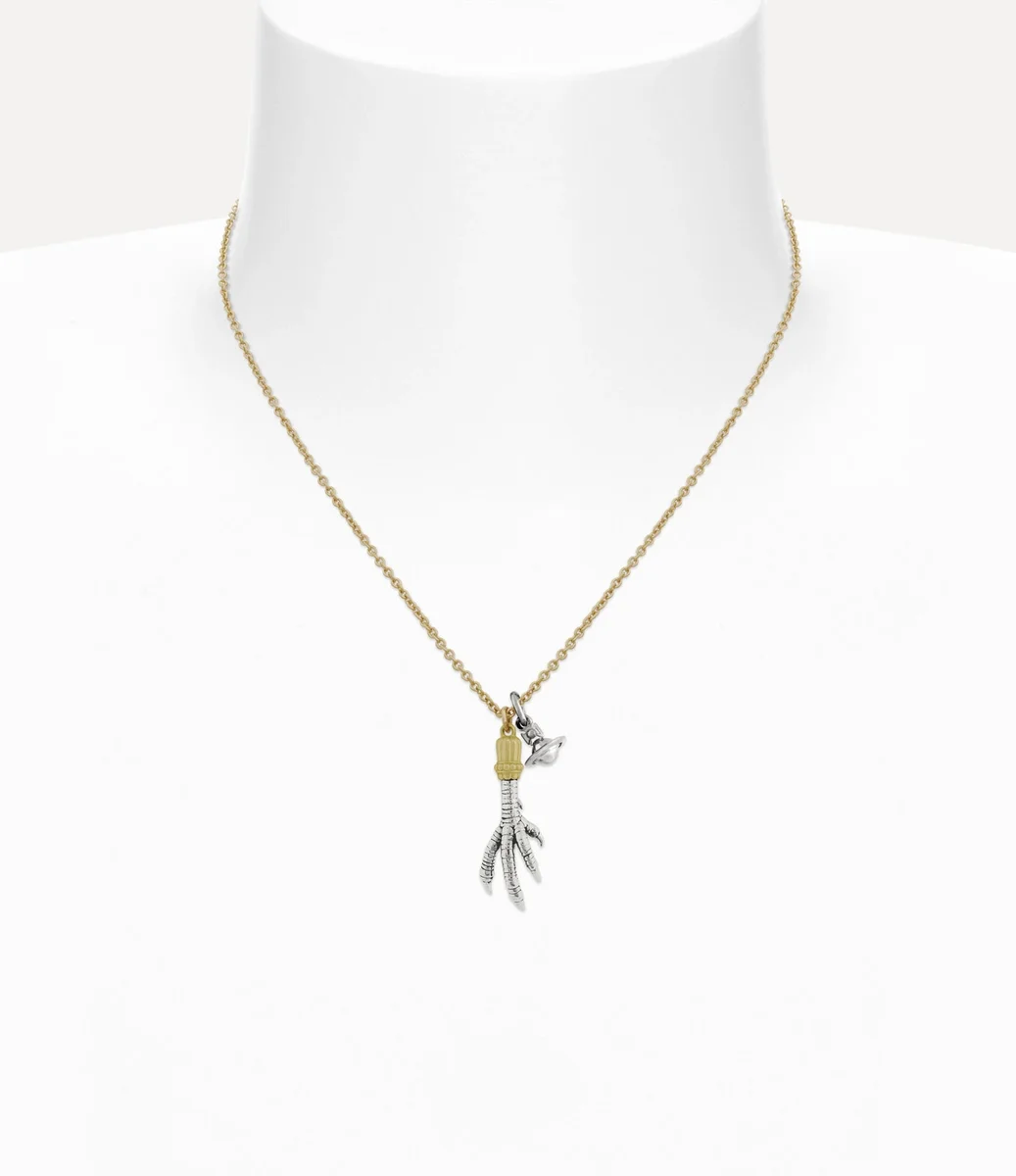 Colierul cu pandantiv Joselita prezintă motivul impresionant al piciorului de găină din acest sezon, un simbol al norocului. Îmbogățit cu o patină neagră pentru a-i evidenția texturile, pandantivul are un finisaj din metale mixte cu placare lustruită și o sferă atârnată, simbolizând etosul casei de a duce trecutul în viitor.
