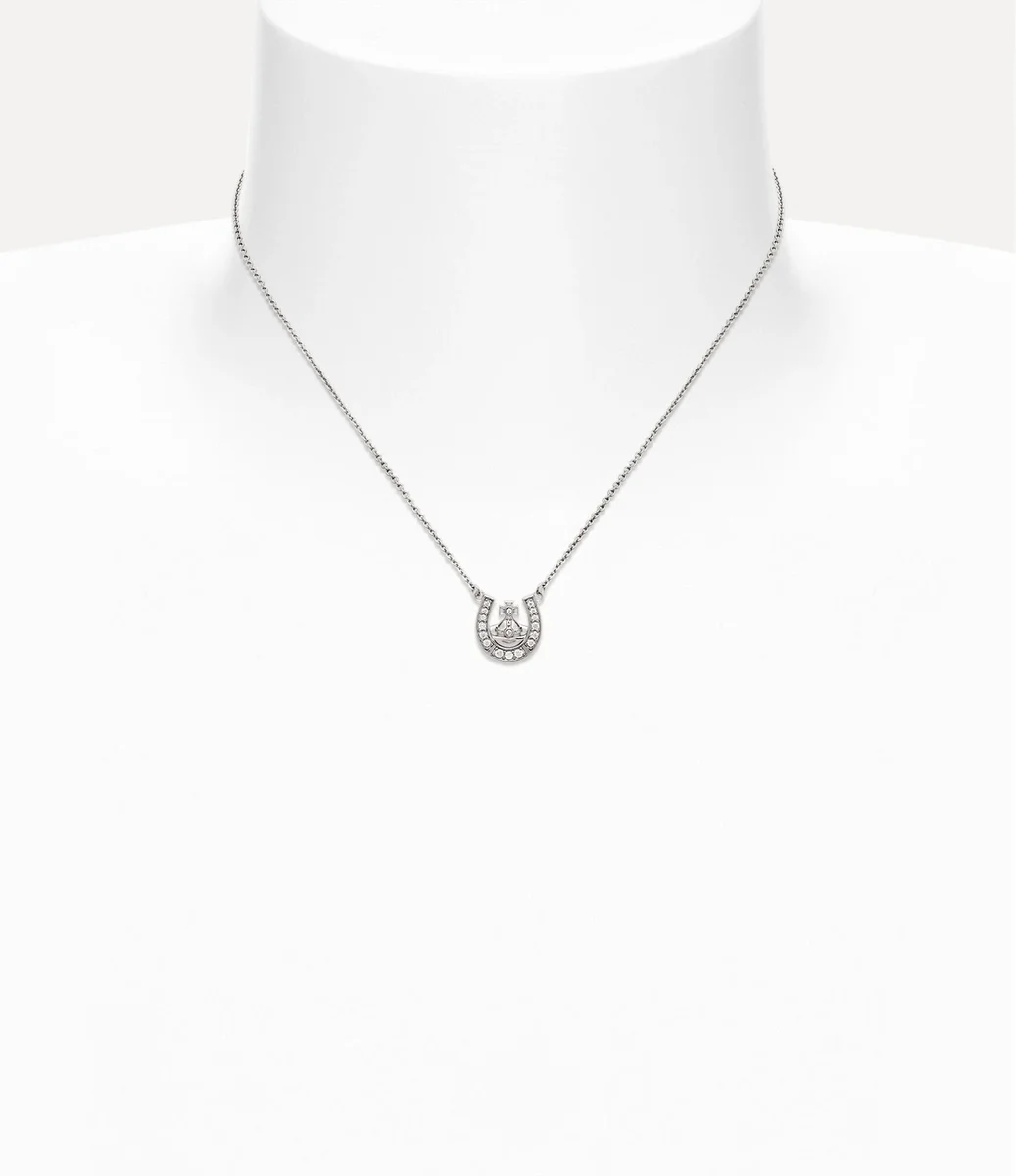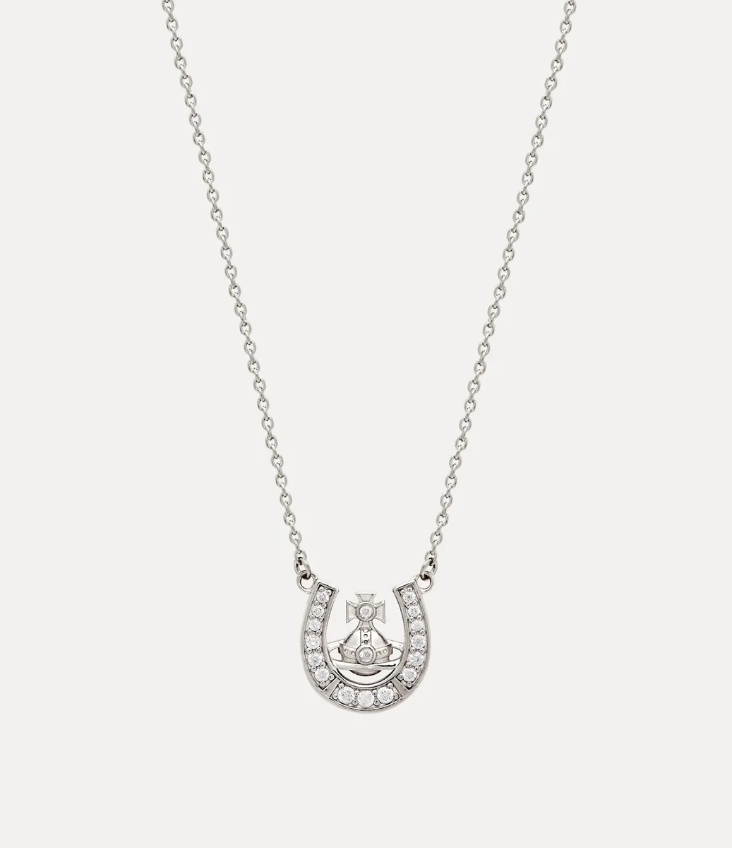 Colierul nostru cu pandantiv Mare este realizat din argint reciclat, completat cu placare lustruită în nuanță platină. Designul prezintă motivul clasic al casei, globul și potcoava, onorând iconografia semnăturii casei, împodobit cu detalii din cristal în nuanțe tonale.