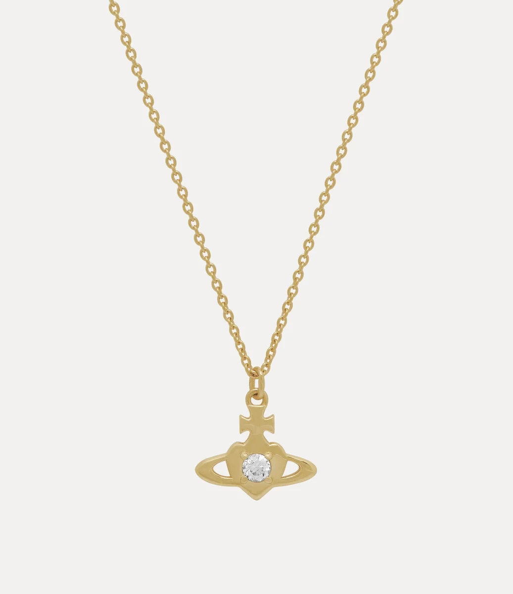 Colierul nostru Noella Pendant are un finisaj auriu, împodobit cu un motiv în formă de inimă, care amintește de afecțiunea lui Vivienne pentru umanitate și planetă. Realizat din argint reciclat, colierul are un cristal alb încorporat în centrul designului.