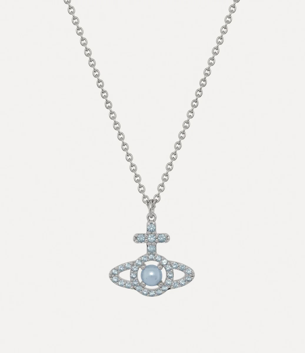 Colierul Olympia Pearl Pendant este o piesă emblematică a casei, având în centru globul nostru distinctiv, inspirat de motivul nostru iconic. Accentuat cu cristale albastre strălucitoare și perle din sticlă, designul reflectă etosul conectării trecutului cu viitorul.