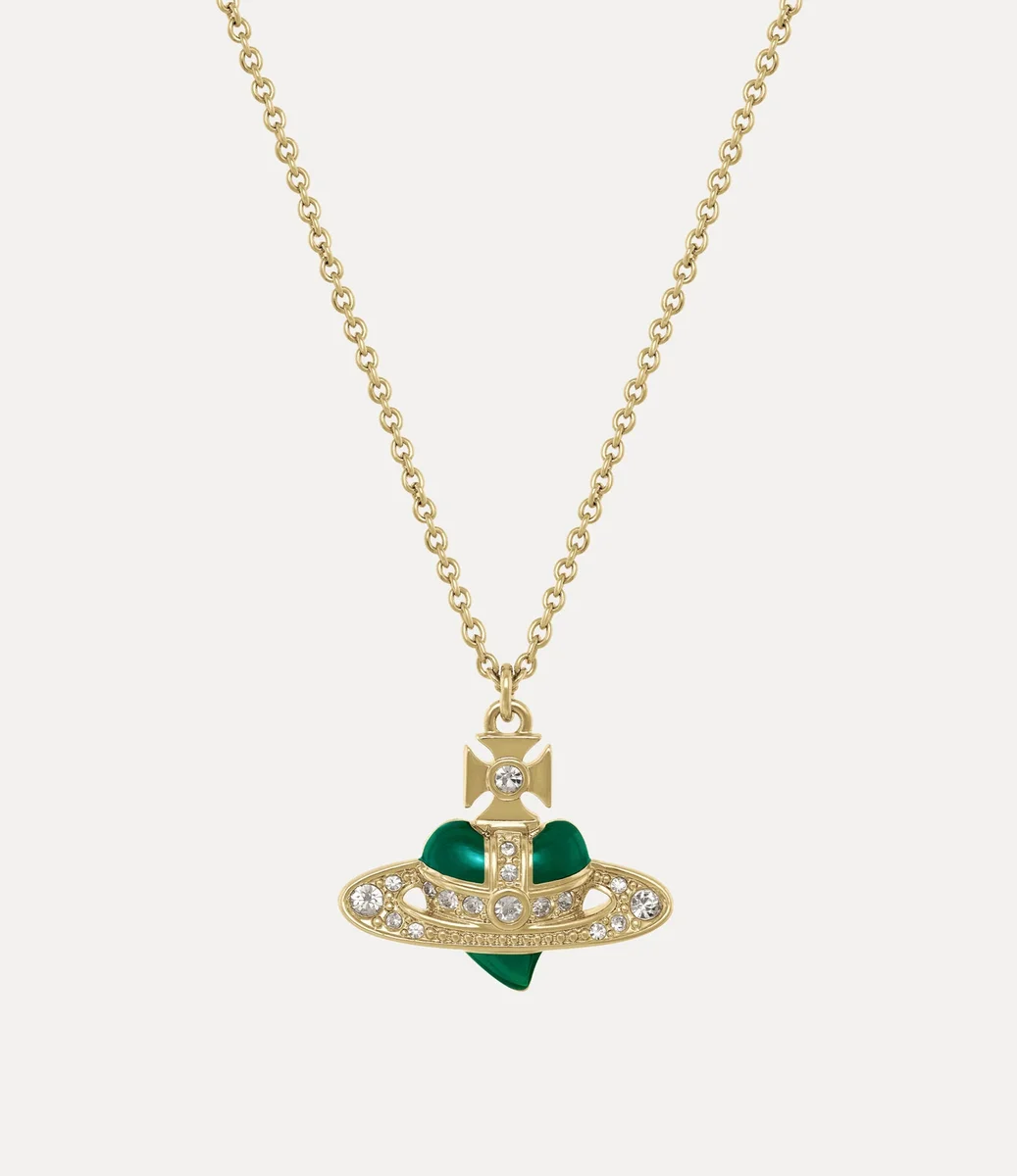 Forma de inimă a devenit un stil caracteristic al casei, sinonim cu afecțiunea lui Vivienne atât pentru umanitate, cât și pentru planetă. Colierul nostru New Diamante Heart Pendant readuce la viață silueta noastră iconică de inimă asimetrică, conturată cu cristale aurii și finisată cu email translucid pictat manual în centrul designului.
