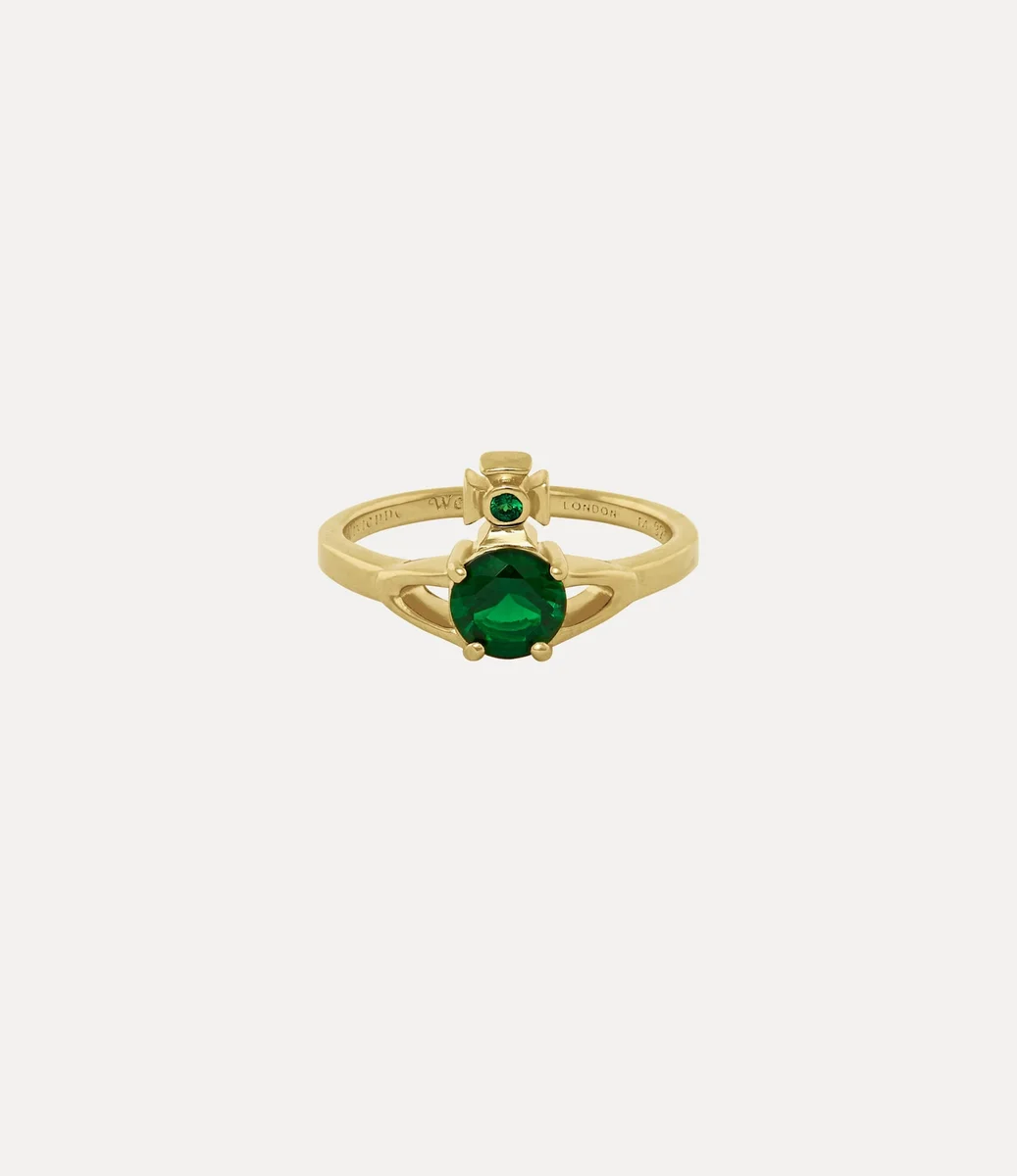 Inelul nostru Reina Petite este disponibil în argint reciclat, cu un finisaj strălucitor în nuanță aurie și ornamente din cristale verzi. Piesa are o față în formă de glob, care reprezintă tradiția, înconjurată de inelele celeste ale lui Saturn, simbolizând viitorul.