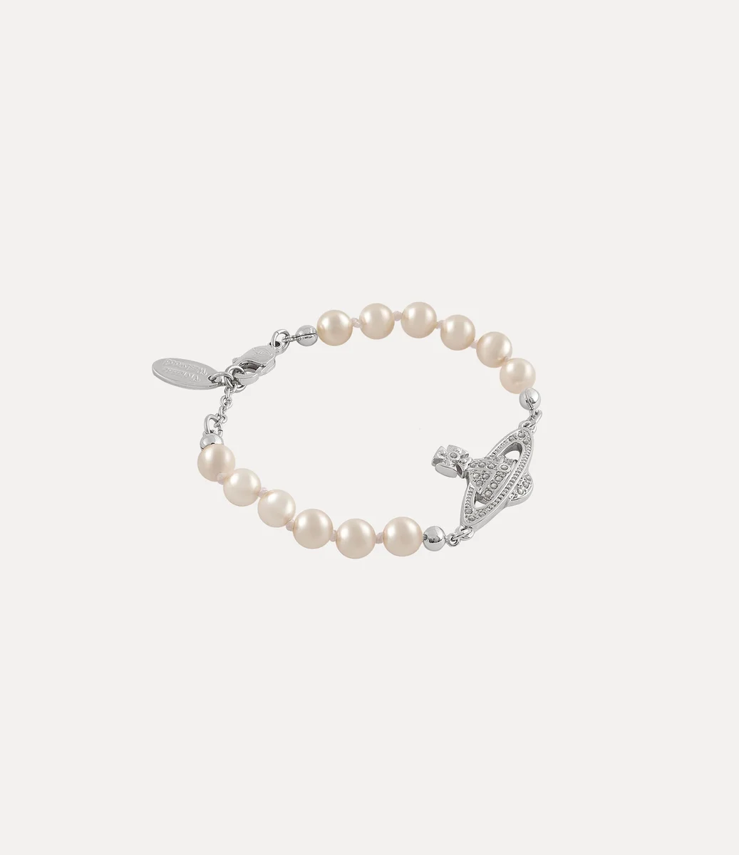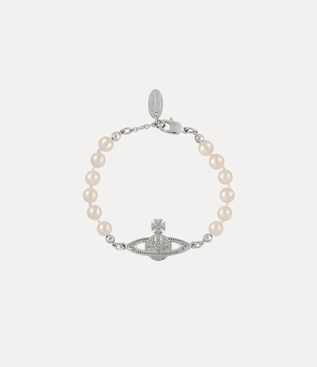 Perlele sunt o componentă cheie a imaginii casei, simbolizând luxul și rebeliunea. Brățara Mini Bas Relief Pearl prezintă o serie de perle din sticlă, împodobite cu un motiv sferic încrustat cu cristale în centrul designului – sinonim cu viziunea Viviennei de a duce tradiția în viitor.