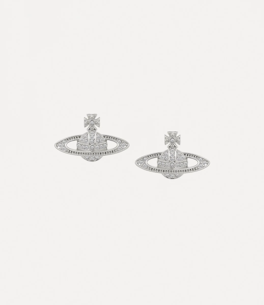 În acest sezon, cerceii Mini Bas Relief prezintă silueta clasică a sferei, conturată elegant cu cristale strălucitoare și finisată cu placare argintie lustruită. Detaliat cu decupaje complexe în jurul inelelor lui Saturn, designul reflectă viziunea Viviennei de a duce tradiția în viitor.