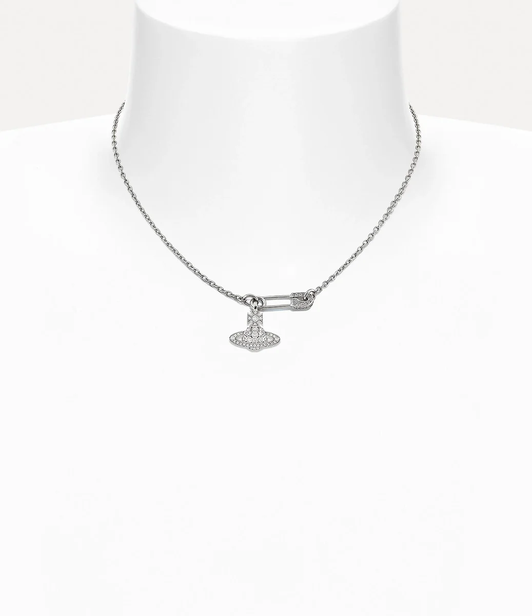Colierul cu pandantiv Vivienne Westwood Lucrece prezintă detalii împodobite cu cristale în nuanțe de argint lustruit, accentuate de motivul nostru cu ac de siguranță și designul iconic în formă de glob.