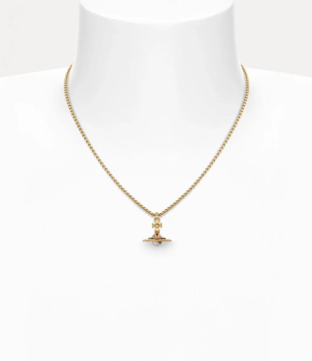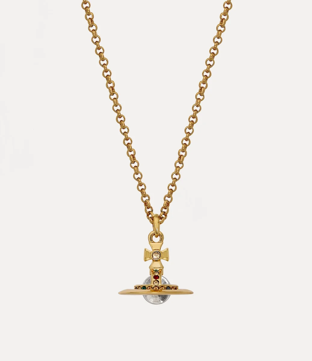 Colierul nostru nou Petite Orb a fost actualizat în acest sezon cu placare aurie. Încrustat cu detalii din cristale colorate strălucitoare, designul încorporează globul tridimensional caracteristic al casei în centrul lanțului – sinonim cu viziunea Viviennei de a lansa tradiția în viitor.
