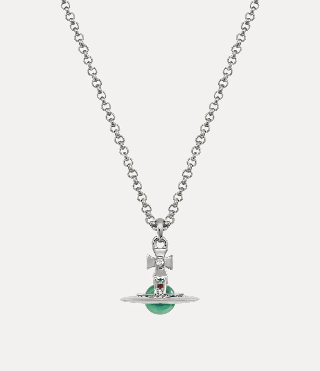 Colierul nostru New Petite Orb Pendant a devenit un stil caracteristic al casei. În acest sezon, piesa este actualizată cu placare argintie și un glob tridimensional colorat încrustat cu un inel Saturn cu cristale – sinonim cu etosul lansării trecutului în viitor.