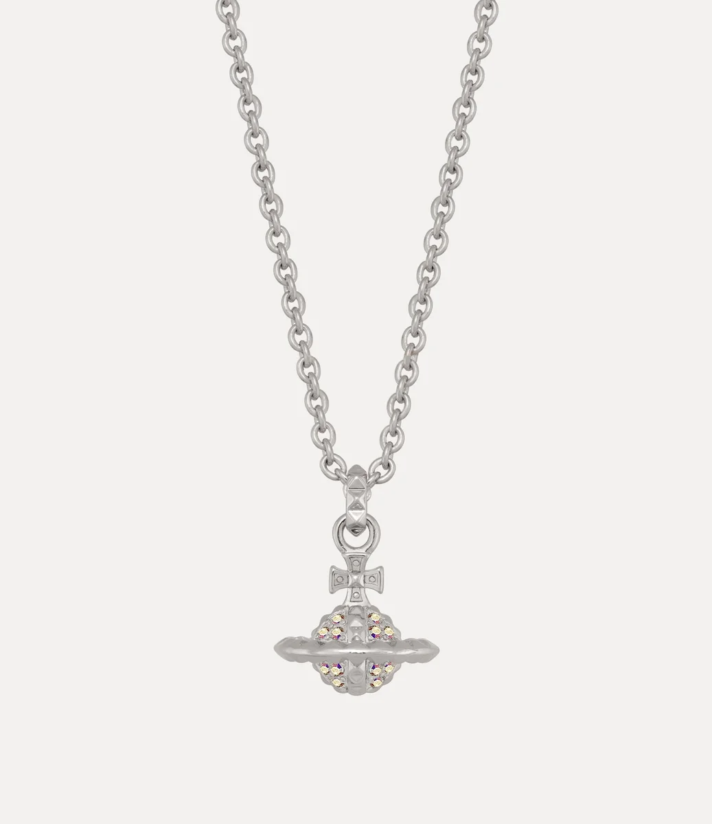 Designul colierului nostru cu pandantiv Small Mayfair Orb se inspiră din emblema noastră caracteristică, globul, sinonim cu viziunea Viviennei de a lansa tradiția în viitor. Piesa prezintă un pandantiv tridimensional în formă de glob în centrul designului, împodobit cu pietre prețioase irizate și evidențiat de detalii cu știfturi, evocând abordarea punk caracteristică casei.
