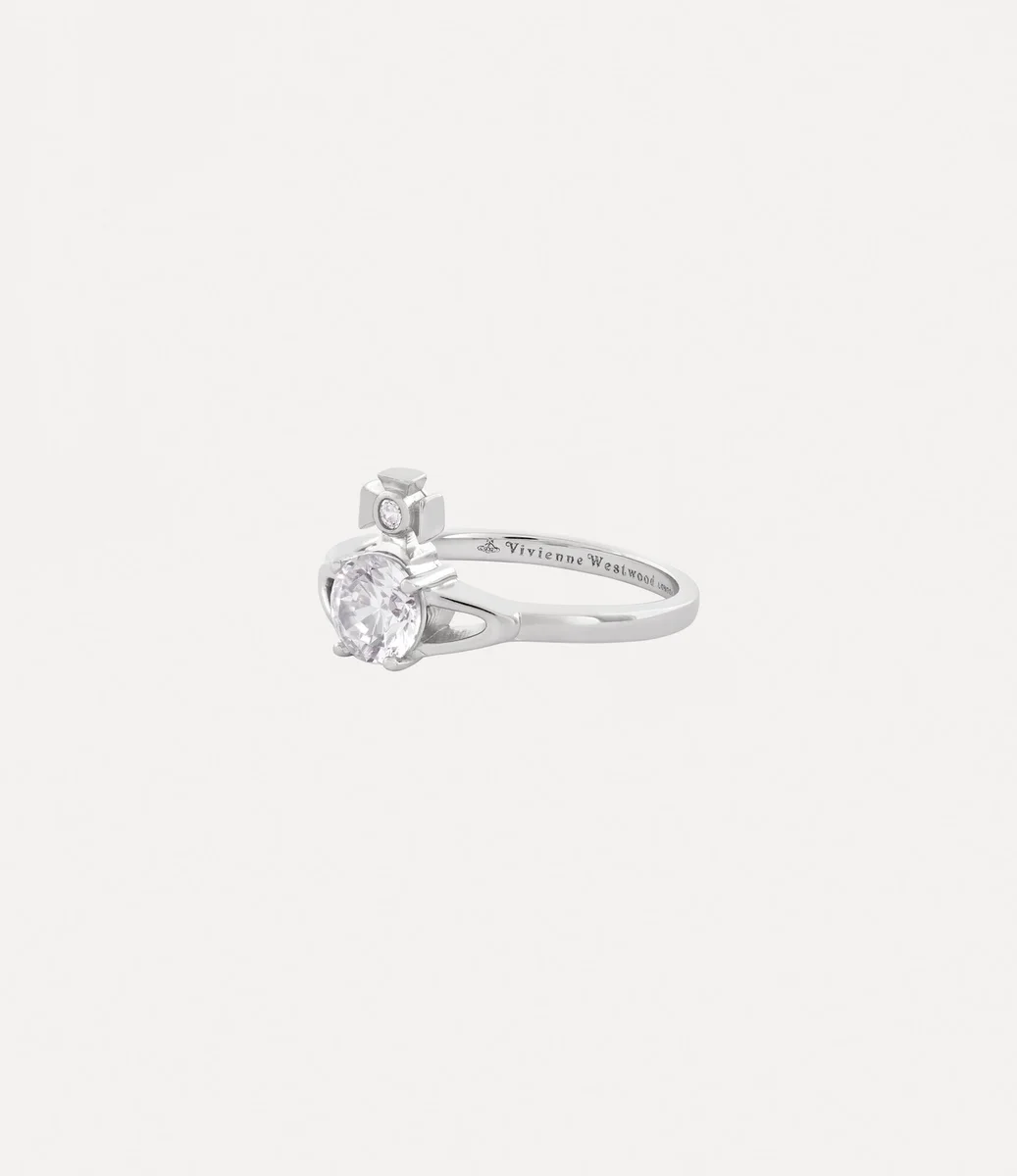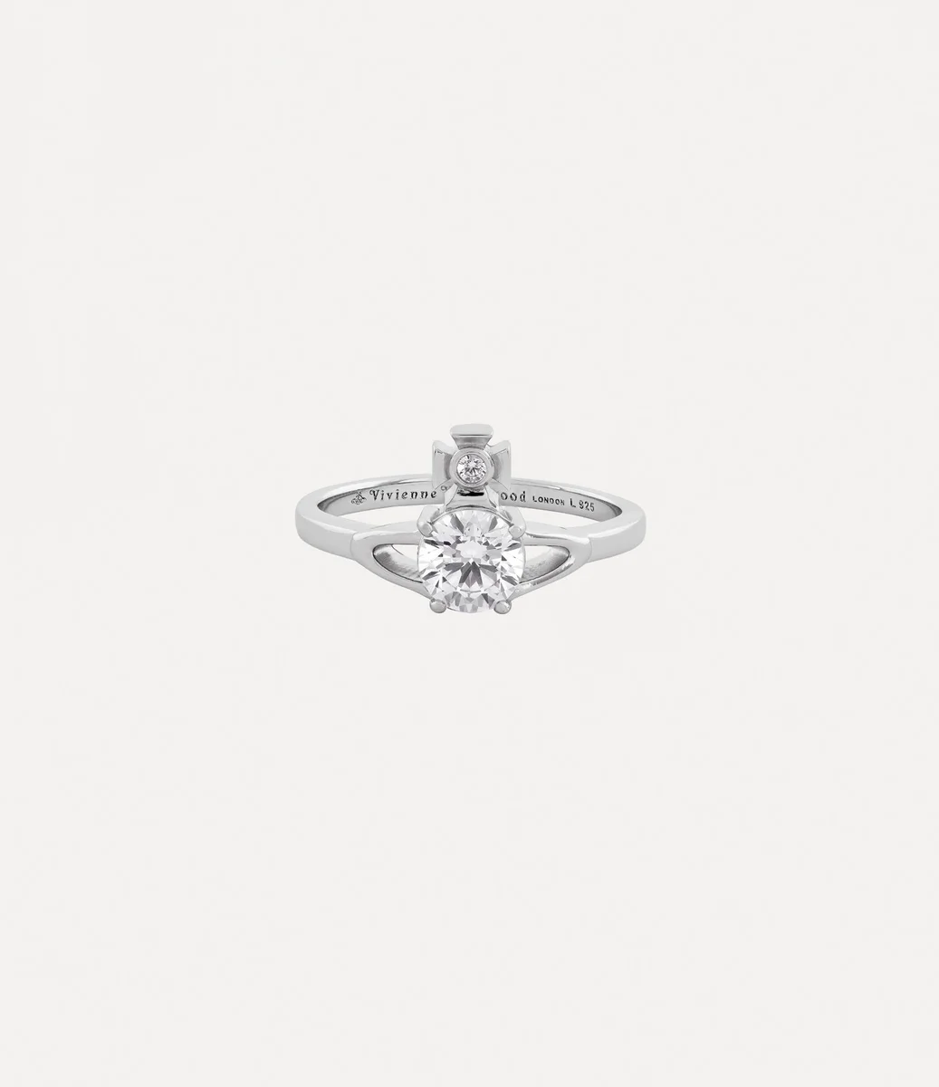 Inelul nostru Reina Petite din argint reciclat prezintă un motiv orb pe față, inspirat din emblema orb semnătura casei – sinonimă cu viziunea Viviennei de a duce tradiția în viitor. Banda delicată este gravată cu un orb și motivul clasic „Vivienne Westwood” pe banda interioară.