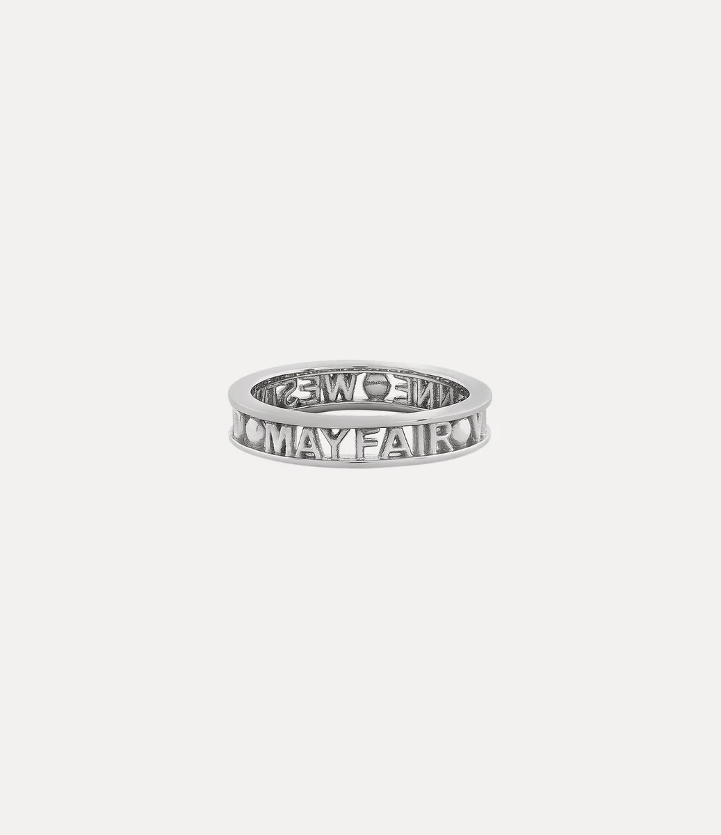 Inelul nostru Westminster poartă numele renumitului cartier Westminster din Londra, cunoscut pentru istoria sa bogată și importanța culturală. Piesa are o siluetă realizată din argint reciclat, împodobită cu un finisaj în nuanță de platină care înconjoară elegant logo-ul cu litere subțiri de pe bandă.