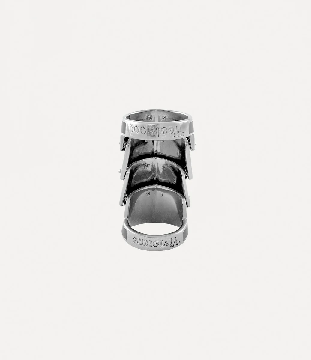 Inelul Artemis imită designul jachetelor inspirate de armuri din colecția „Time Machine” a Vivienne Westwood din 1988, reflectând fascinația profundă a Vivienne pentru colecția Wallace. Piesa prezintă secțiuni de email pictate manual care se suprapun, împodobite cu motivul nostru caracteristic, globul, care întruchipează etosul de a duce trecutul în viitor.
