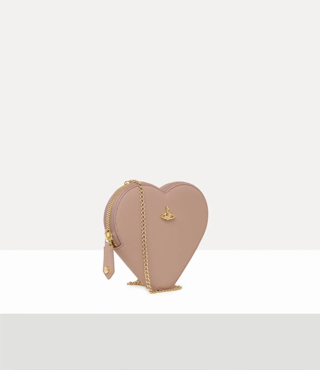 Geanta New Heart Crossbody are o siluetă în formă de inimă, care amintește de afecțiunea lui Vivienne pentru umanitate și planetă. Piesa prezintă un motiv orb în tonuri aurii deschise pe panoul frontal al designului, care simbolizează tradiția, înconjurat de inelele celeste ale lui Saturn, reprezentând viitorul.