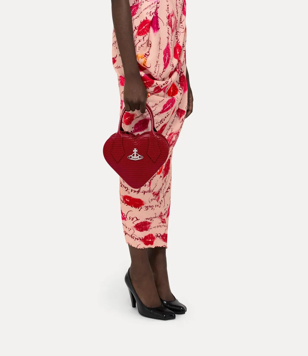 Geanta noastră Josephine Heart Crossbody reinterpretează motivul în formă de inimă, semnătura casei, amintind de afecțiunea lui Vivienne pentru umanitate și planetă. Confecționată din piele embosată cu efect de crocodil, geanta are un design elegant, cu un singur compartiment și închidere cu fermoar, împodobită cu motivul nostru clasic „Line Orb”.