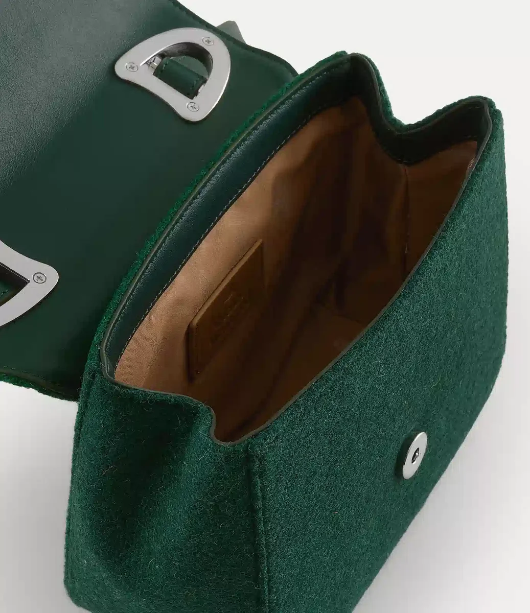 Geanta crossbody Vivienne Westwood Linda este confecționată din lână și prezintă motivul nostru iconic orb, reinterpretat în finisajul cu smocuri al acestui sezon.