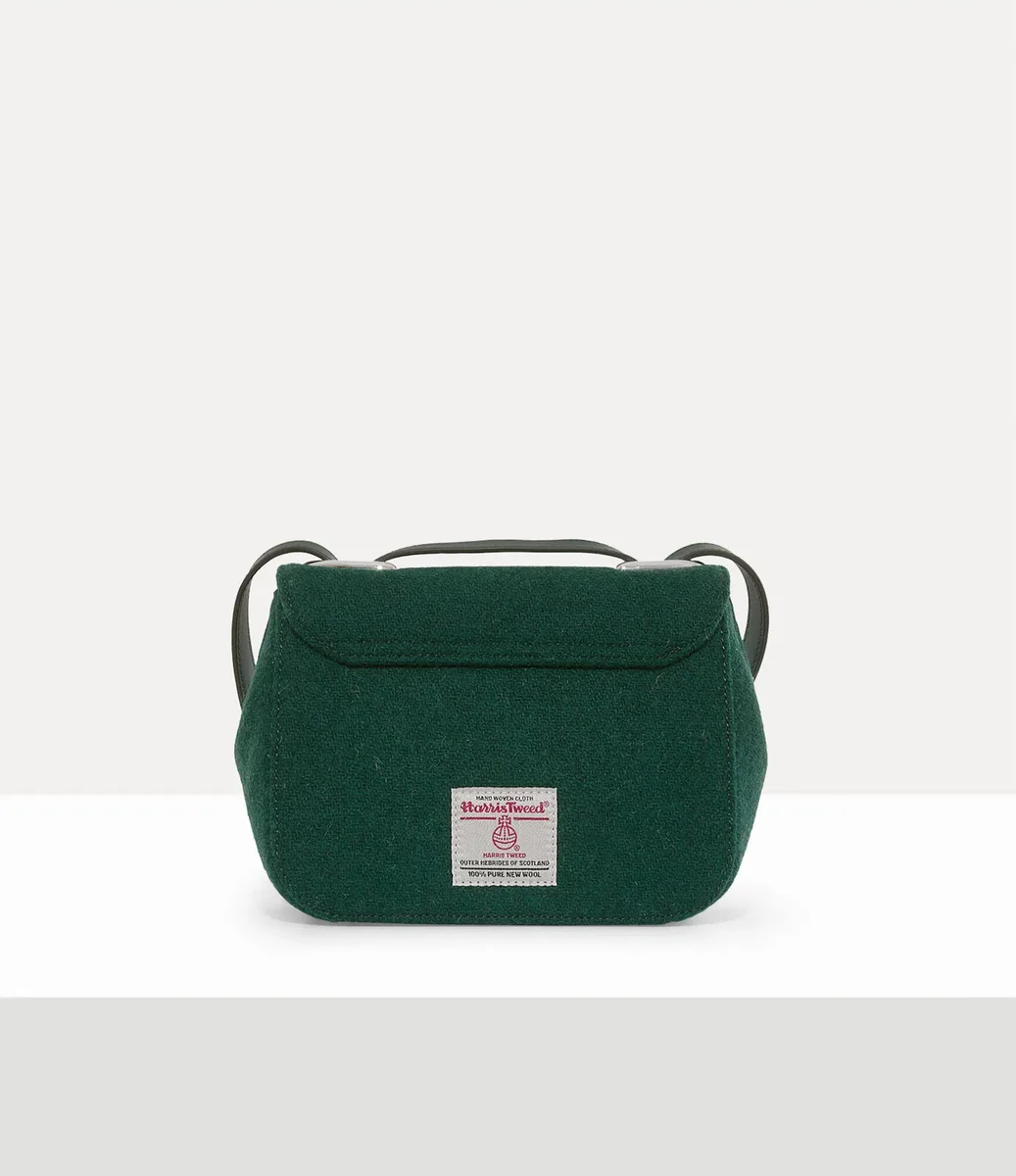 Geanta Linda Medium crossbody revine în acest sezon din lână simplă, expert marmorată pentru a obține textura caracteristică Harris Tweed. Prezentată într-o nuanță moale, pământească, care reflectă peisajul bogat și variat al Highlands-ului scoțian, designul este finisat cu motivul nostru iconic multicolor Orb, reimaginat în finisajul cu smocuri al acestui sezon.