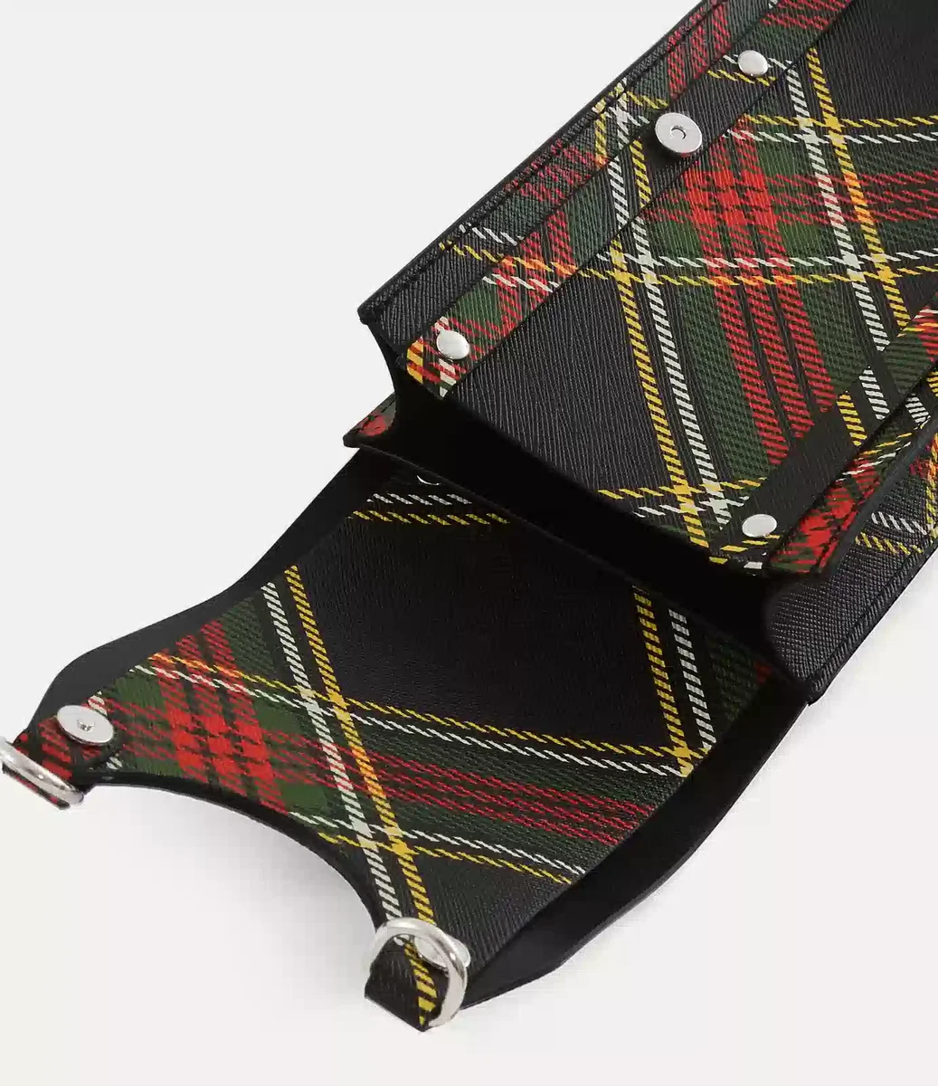 Geanta noastră Max Mini Crossbody prezintă elemente inspirate din bondage, care amintesc de colecția noastră „Erotic Zones” din primăvara-vara 1995, completată cu detalii metalice argintii. Piesa este decorată cu modelul nostru tartan „Chelsea” vibrant, finisat cu un motiv „Line Orb” pe clapeta frontală.