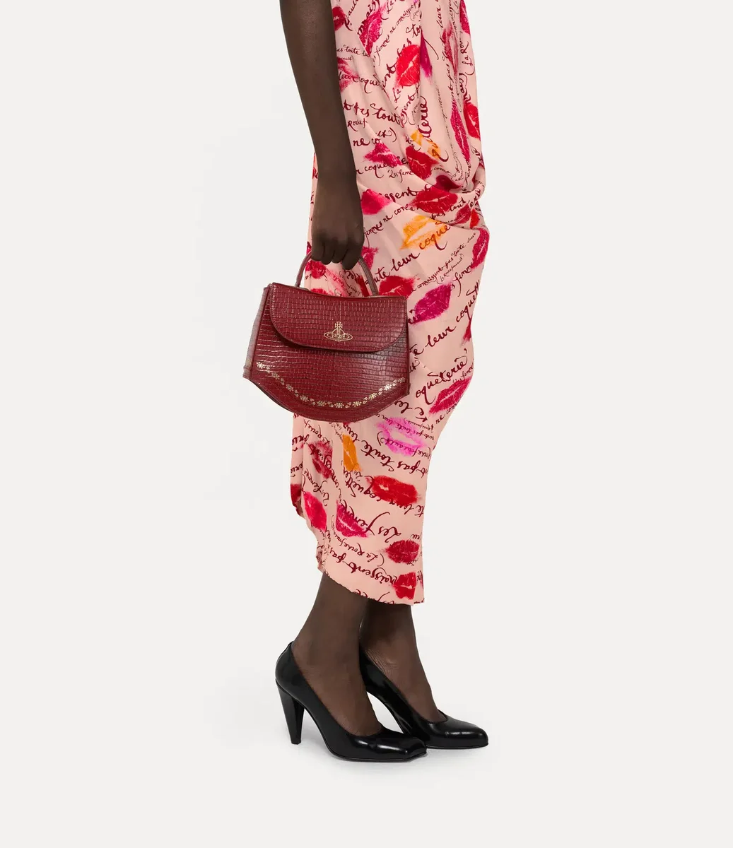 Geanta Vivienne Westwood Chloe Top Handle este confecționată din piele moale de vițel și prezintă motivul în relief „Mini” cu efect de crocodil, specific sezonului.