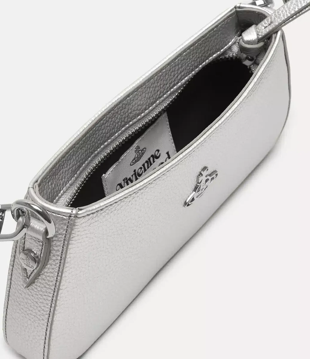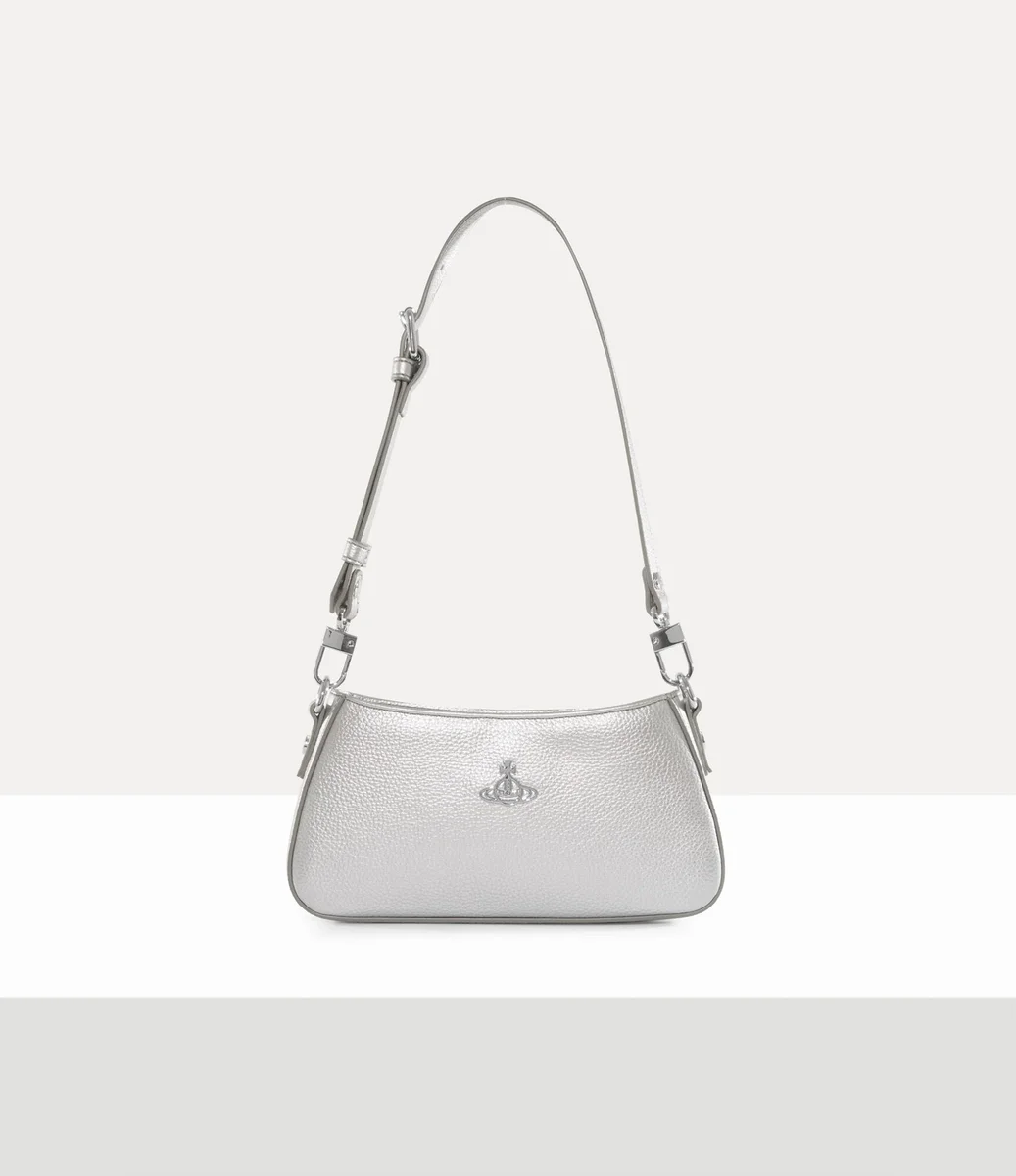 Geanta de umăr pentru telefon Tasha este confecționată din piele PU cu textură în relief și finisaj metalic, împodobită cu accesorii din alamă semnate de brand. În partea din față se află motivul „Line Orb”, care simbolizează tradiția, înconjurat de inelele celeste ale lui Saturn, care simbolizează viitorul.